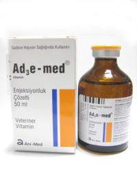 AD3E-MED Enjeksiyonluk Çözelti berrak sarı renkli bir çözelti olup her ml’si 500.000 IU Vitamin A, 75.000 IU Vitamin D3 ve 50 mg Vitamin E içerir.