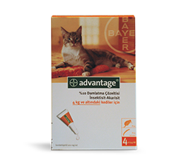 ZEHİRLİ Sadece Hayvan Sağlığında Kullanılır BİLEŞİMİ: Beher ml açık sarıdan kahverengiye kadar olan Advantage® %10 damlatma çözeltisi 100 mg İmidakloprid içerir. FARMAKOLOJİK ÖZELLİKLERİ: İmidakloprid kloronikotinil grubuna dahil bir ektoparaziter olup pirelerin ergin ve larva formlarına etki eder. İmidakloprid in- sektlerin merkezi sinir sisteminin post sinaptik bölgelerindeki nikotinerjik asetilkolin reseptörlerine yüksek derecede affinite gösterir. İnsektlerdeki kolinerjik iletimlerin inhibisyonu sonucunda insektler felç olur ve ölürler. Memelilerde yapısal olarak farklı nikotinerjik reseptör noktaları ile zayıf etkileşimi ve merkezi sinir sistemini koruyan membranöz bariyerlere düşük affinitesine bağlı olarak imidakloprid, kolinerjik transmisyon üzerindeki bloke edici etkisini spesifik olarak parazitlerde göstermektedir. Bu etkiye bağlı olarak parazit felç olur ve ölür. Advantage® tavsiye edildiği şekilde deri üzerine uygulandığında hayvanın tüm vücut yüzeyi üzerinde deri ve tüylere hızlı bir biçimde dağılım gösterir. Deriye damlatılarak kullanılan ürünün kan dolaşımına geçmediği, hayvanlarda yüksek dozların kullanıldığı emniyet testlerinde herhangi bir yan etkiye sebep olmadığı tespit edilmiştir. Toksikolojik bilgiler: İmidakloprid toksikolojik sınıf ll'ye girer (WHO, EPA). Farelerdeki akut oral LD50 dozu 450 mg/kg'dır, mutajenik ve teratojenik etkileri yoktur. KULLANIM SAHASI/ENDİKASYONLAR: Advantage® köpek ve kedilerin pire enfestasyonlarından korunma ve mücadelesinde kullanılır {Ctenocephalides spp.). Hayvanın üzerindeki pireler ilaç uygulamasından 12 saat sonra % 98-% 100 oranında ölür. Tek uygulama yeni pire enfestas- yonlarını en az dört hafta boyunca önler. Ürün, pirelerden kaynaklanan allerjik dermatitiste, tedavinin bir parçası olarak da kullanılabilir. UYGULAMA ŞEKLİ VE DOZU: Kedilerde uygulama: Önce tüyler iki yana ayrılır, sonra uygulanır. Köpeklerde uygulama: Kedilerde uygulama 25 kg'ın altındaki köpeklerde uygulama Pipet elde dik durumda tutulurken, kapağı çıkartılıp, ters çevrilerek pipetin ağzı üzerinde yerleştirildikten sonra, buradaki mührü kırmak üzere çevrilir. Köpek ve kedi ayakta iken, iki omuz arasındaki bölgede bulunan tüyler iki yana ayrılarak deri ortaya çıkarılır. Pipet içeriğinin tamamı doğrudan deri üzerine sıkılır. 25 kg'ın üzerindeki köpeklerde uygulama 25 kg'ın üzerindeki köpeklerde iki omuz arasındaki tüyler ayrılıp deri üzerine 2,5 ml'lik bir tüp ve kuyruk başlangıç bölgesindeki tüyler ayrılarak deri üzerine diğer bir 2,5 ml'lik tüp uygulanır. AĞIRLIK URUN 4 kg'ın altındaki kedi ve köpekler için Advantage® 0,4 ml'lik 1 pipet 4-10 kg arasındaki köpekler için Advantage® 1,0 ml'lik 1 pipet 10-25 kg arasındaki köpekler için Advantage® 2,5 ml'lik 1 pipet 25 kg'ın üzerindeki köpekler için Advantage® 2,5 ml'lik 2 pipet ÖZEL KLİNİK BİLGİLER VE HEDEF TÜRLER İÇİN UYARILAR: Bir tedavi 12 saat içinde pirelerin %98-100'ünü öldürür ve 4 hafta boyunca etkinlik sağlar. Advantage® pirelerin ergin şekillerine etki etmesinin yanında, tedavi edilmiş köpeklerin çevresinde bulunan larvalara karşı da etkilidir. Böylelikle köpeklerin çevresinde bulunan pire larvaları da, tedavi edilmiş köpekler ile temasa geçtiklerinde öldürülmüş olur. Advantage®, pirelerden kaynaklanan alerjik dermatitlerin (FAD) tedavi stratejisinin bir parçası olarak kullanılabilir. Advantage® laboratuvar çalışmalarında muköz membranlara orta derecede irritan olarak bulunduğu için, ilacı kullanan kişi ilacın köpeğin göz ve ağzına değmemesine dikkat etmelidir. İdeal bir koruma ve pire mücadelesi için ayda bir ilaç uygulamasının tekrarı gereklidir. Hayvan şampuanla yıkandığı takdirde ilaç uygulaması yıkama sonrası yapılmalıdır. Yapılan klinik denemelerde ürün embriyotoksik, teratojenik veya toksik etkiler meydana getirmemiştir. Gebelikte kullanım: Gebe köpek ve kedilerde kullanılmasında sakınca yoktur. İSTENMEYEN/YAN ETKİLER: İlaç uygulamasının hemen ardından kediler uygulama noktasını yalarsa, ürünün acı tadından ötürü salya salgısı artabilir. Bu durum bir zehirlenme belirtisi olmayıp birkaç dakika içinde kendiliğinden geçer. Nadir olarak geçici deri duyarlılıkları (uygulama bölgesinde kaşıntı, kıl dökülmesi ve kızarıklık dahil renk değişiklikleri) ve uyuşukluk şekillenebilir.. İLAÇ ETKİLEŞİMLERİ: Diğer ilaçlar ile geçimsizliği bildirilmemiştir. Farklı dış parazit ilaçları ile birlikte kullanılmamalıdır. DOZ AŞIMINDA BELİRTİLER, TEDBİRLER VE ANTİDOT: Tavsiye edilen dozun 2-10 katı uygulanması ve tavsiye edilenden daha kısa aralıklarla uygulanması ile test edilmiştir ve bir yan etki oluşmamıştır.. Kazara ilacın oral alımı durumunda hareketlerde dengesizlik, konvülsiyonlar, titreme veya solunum güçlüğü gibi zehirlenme belirtileri meydana gelebilir. Sempto- matik olarak sağaltılabilecek zehirlenme belirtileri aktif kömür kullanımıyla hafifletilebilir. Spesifik antidotu yoktur. GIDALARDAKİ İLAÇ KALINTILARI HAKKINDA UYARILAR: Gıda değeri olan hayvanlara uygulanmaz. KONTRENDİKASYONLARI: Sağlıklı deri üzerine damlatma haricinde uygulanmaz. 8 haftadan küçük köpek yavrularında ve 10 haftadan küçük kedi yavrularında uygulanmamalıdır. Advantage® 1,0 ml 4 kg'dan hafif köpeklerde, Advantage® 2,5 ml 10 kg'dan hafif köpeklerde kullanılmamalıdır. GENEL UYARILAR: • Kullanmadan önce veteriner hekime danışınız. • Çocukların ulaşamayacağı yerlerde bulundurunuz. • Beklenmeyen bir etki görüldüğünde veteriner hekime danışınız. • Gıda maddelerinden ve hayvan yemlerinden uzakta bulundurunuz. UYGULAYICININ ALMASI GEREKEN ÖNLEMLER VE HEKİMLER İÇİN UYARILAR: Deri ile temastan sakınınız. Deri ve