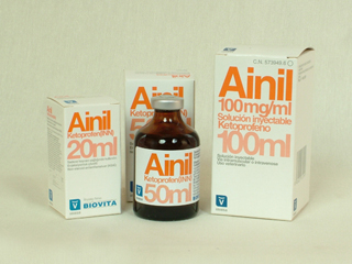 AİNİL BİLEŞİMİ Berrak, steril ve homojen bir çözelti olan Ainil’in 1 ml’si 100.00 mg ketoprofen (2-(fenil-3-benzil) propiyonik asit)içermektedir. KULLANIM SAHASI/ENDİKASYONLARI Sığır ve atlarda solunum sistemi enfeksiyonlarına, meme ödemine, akut mastitise, kas-iskelet sistemi yangılarına bağlı olarak şekillenen inflamasyonun, ağrının ve ateşin giderilmesinde ve puerperal parezislerin tedavisine destek olarak uygulanır. Atlarda ise osteoartiküler ve kas iskelet sistemi inflamasyonlarının tedavisinde, özellikle travmatik kökenli topallıklarda, artritis, artrozis, artiküler travmalar (burkulmalar, sinovitis), fraktürler, tendinitis, ayakla ilgili durumlarda (pododermatitis, tırnak hastalıkları) antiinflamatuar, analjezik ve antipiretik olarak uygulanır. KULLANIM ŞEKLİ VE DOZU Genel farmakolojik doz atlar için 2.2 mg/kg c.a sığırlar içinse 3 mg/kg c.a dır.