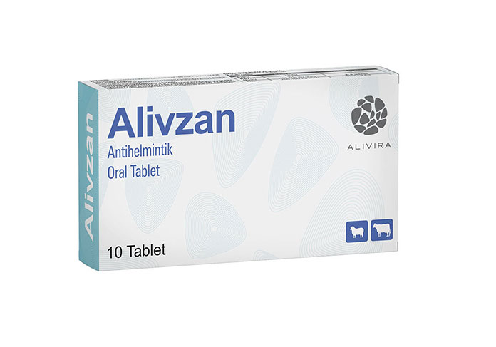 Alivzan Oral Tablet Bileşimi: Her tablet, 375 mg Oksfendazol ve 750 mg Oksiklozanid içerir. Kullanım Sahası: Sığır ve koyunlarda; mide-bağırsak ve akciğer kıl kurtlarının erişkin ve larva şekilleri, karaciğer kelebekleri ve Moniezia sp.’ lerin ergin şekillerinin tedavi ve korunmasında antihelmintik olarak kullanılmaktadır. Ticari Takdim Şekli: Karton kutu içerisindeki 10, 20, 50 tablet’lik blisterde satışa sunulmuştur. Kullanmadan önce prospektüsü okuyunuz. |