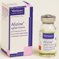 BİLEŞİMİ Alizine, her 1 ml susuz taşıyıcı içinde 30 mg aglepriston içeren; berrak, sarı renkli, yağlı (su içermeyen taşıt madde) kullanıma hazır bir çözeltidir. ENDİKASYONLARI Gebe köpeklerde çiftleşmenin 45. gününe kadar düşük oluşturma amacıyla kullanılır. KULLANIM ŞEKLİ VE DOZU 2 defa 24 saat ara ile her kg ca başına 10 mg aglepriston (0.33 ml Alizine'ye eşdeğer) uygulanır. Yalnızca deri altı yolla uygulanır. Enjeksiyon yerine hafif bir masaj yapılması tavsiye edilir. Büyük köpeklerde aynı bölgeye en fazla 5 ml enjekte edilmesi tavsiye edilir. Bu ürün antimikrobiyal bir koruyucu ihtiva etmez. Bu nedenle her doz çekildikten sonra tıpa alkollü pamuk ile temizlenir. Kuru bir steril iğne ve şırınga kullanılır. Pratik doz tablosu: Köpek canlı ağırlığı Uygulanacak Alizine miktarı 3kg 1ml 7kg 2.3ml 10kg 3.3ml 15kg 5ml 20kg 6.6ml 30kg 10ml 40kg 13.3ml |