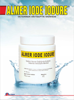 ALMER POMAD IODE IODURE; % 2 İyot, % 10 Potasyum İyodür içerir. Koyu kahverengi renkte, karaktersitik bir kokuya sahip merhemdir. Her 100 gramda