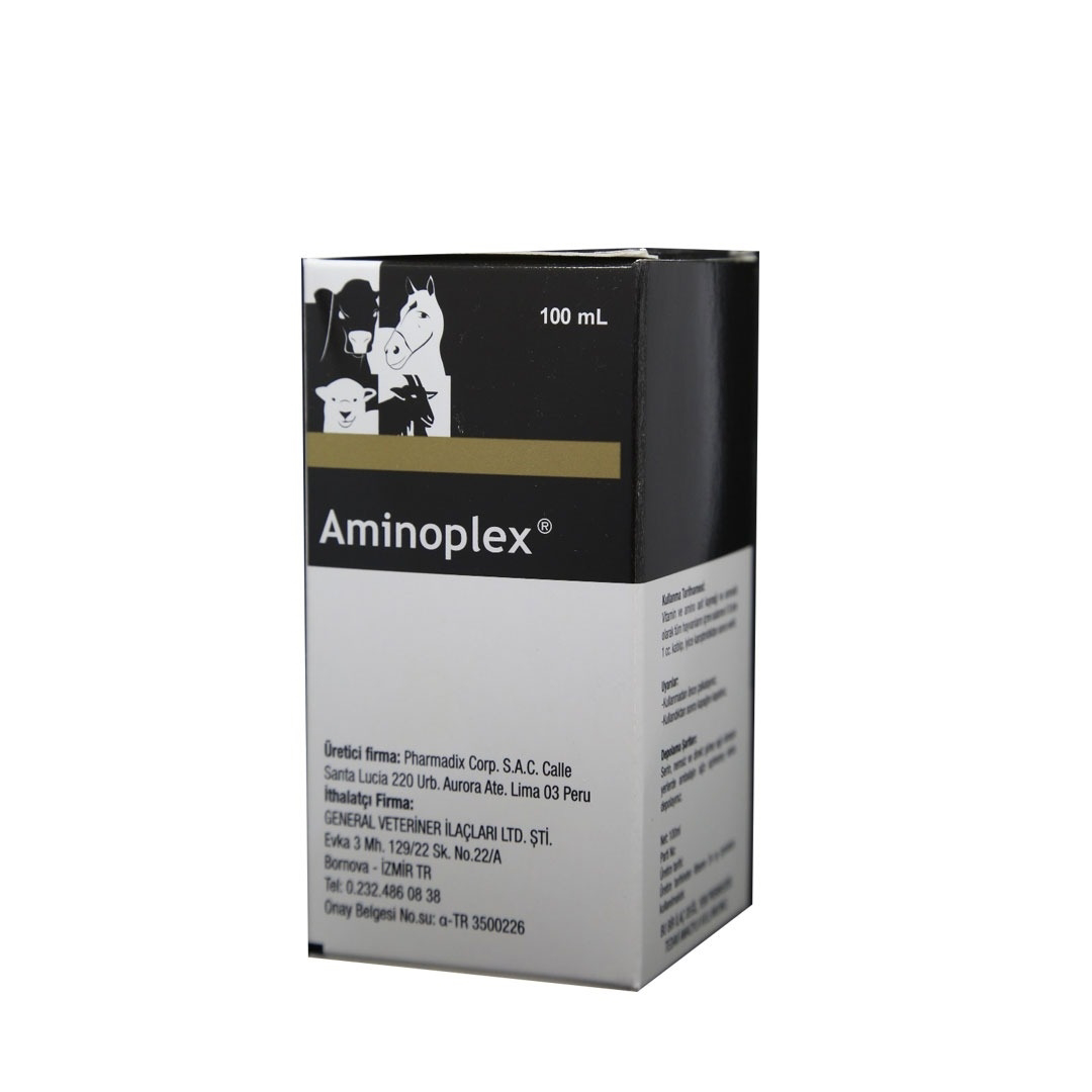 Aminoplex Injection, sığırlarda, atlarda, köpeklerde ve kedilerde zayıflamış hayvanların tedavisinde yardımcı olarak ve çalışan hayvanlar için bir takviye olarak kullanılan bir vitamin ve amino asit enjeksiyon takviyesidir.
