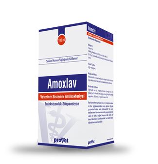AMOXLAV BİLEŞİMİ 25 ml.lik renksiz şişede beyaz toz halinde 3.500 mg Amoksisilin baza eşdeğer Amoksisilin sodyum 875 mg klavulanik asite eşdeğer potasyum klavulanat içerir. 25 ml.lik renksiz şişede 18 ml enjeksiyonluk su içerir. Çözücü ile tozun karıştırılmasından sonra elde edilen 20 ml.lik sarı renkli , berrak çözeltinin her ml'sinde 175 mg amoksisilin baza eşdeğer amoksisilin sodyum ile 43.75 mg klavulanik asite eşdeğer potasyum klavulanat bulunur. FARMAKOLOJİK ÖZELLİKLERİ Amoksisilin bakterisidal etkili , aminopenisilin grubundan bir yarı-sentetik penisilindir. Bakteri hücre duvarında mukopeptit sentezini engelleyerek etki gösterir.Klavulanik asit karboksilik asit yapısında penisilinlere benzer bir bileşiktir. Streptomyces clavigulerus fermentastonundan elde edilir.Bakteriyel beta-laktamaz enzimlerine karşı dönüşümsüz inhibitör etkisi ile spesifik bir etkiye sahiptir. Beta-laktamaz ile yaptığı stabil, inaktif kompleks amoksisilinin enzim tarafından parçalanmasını engeller. Amoksisilin -klavulanik asit kombinasyonu in vitro olarak klinik olarak önemli pek çok bakteriye karşı etkilidir. Bunlar arasında aşağıdaki bakteriler sayılabilir. Gram- pozitif bakteriler: Stafilokoklar (0-laktamaz üreten suşlar dahil) , Streptokoklar, Corynebakteriler, Clostridiumlar, Bacillus anthracis, Actinomyces bovis , Pentostreptococcus spp. Gram - negatif bakteriler: Actinobacillus pleuropneumoniae, Echerichia coli (0-lactamase üreten suşlar dahil), Salmonella (0-lactamase üreten suşlar dahil), Haemophilus spp.,Morexella spp. Ve Actinobacillus lignieresi. Amoksisilin ve klavulanik asitin sudaki kombinasyonu kasiçi veya derialtı enjekte edildiğinde kolay emilerek dokulara dağılır. Enjeksiyondan yarım saat sonra en yüksek plazma seviyesine ulaşır. Karaciğer ve böbrekte en yoğun birikim gözlenir. Amoksisilin ve klavulanik asit birbirlerine yakın bir atılma kinetiği izleyerek 24 saat içinde %80 oranında idrar ve %3 - 4 oranında dışkı ile atılır. ÖZEL KLINIK BİLGİLER VE HEDEF TÜRLER IÇIN UYARILAR Uygulamadan sonra enjeksiyon yerine masaj yapılması önerilir. Gebelikte kullanım:penisilinlerin gebe hayvanlarda plasentayı geçtiği bilinmektedir. Ancak gebe laboratuar hayvanlarında yapılan çalışmalar, bu ilacın fötüs üzerinde yan etkileri olduğunu göstermemiştir. Yinede zorunlu bir durum olmadıkça gebe hayvanlarda kullanımından kaçınılmalıdır. İSTENMEYEN ETKİLERİ Penisinlerin en önemli yan etkileri akut anafilaksi ve kollapstır. Ayrıca daha az şiddette fakat daha sıklıkla aşırı duyarlılık reaksiyonları ( ürtiker , ateş , anjionörotik ödem gibi) görülebilir.Anafilaksi oluşursa epinefrin ve /veya oksijen , damariçi steroid uygulanmalıdır. İLAÇ ETKİLEŞİMLERİ Tetrasiklinler , sülfonamidler ve fenikoller gibi bakteriyostatik etki gösteren diğer antibiyotikler ile birlikte kullanılmamalıdır. Diüretikler , amoksisilin atılımını hızlandıracağından antibiyotiğin konsatrasyonunu düşürebilir.Allopurinol gibi ürik asit sentezi inhibitörleri ile birlikte kullanılmamalıdır. DOZ AŞIMINDA BELİRTİLER , TEDBİRLER VE ANTİDOT Aşırı dozlarda gastro- intestinal belirtiler ve sıvı elektrolit dengede bozukluklar ortaya çıkabilir. Bu durumda semptomatik tedavi yapılır. GIDALARDAKİ İLAÇ KALINTILARI HAKKINDA UYARILAR İlaç kalıntı süresi (i.k.a.s.): Tedavi süresince ve son ilaç uygulamasından sonra 20 gün geçmeden sığırlar kesime gönderilmemeliidr. Tedavi süresince ve son ilaç uygulamasından sonra 4 gün (8 sağım)geçmeden elde edilen inek sütü insan tüketiminde kullanılmaz. KONTRENDİKASYONLARI Penisilin ve sefalosporinlere duyarlılığı olan hayvanlarda kullanılmamalıdır. GENEL UYARILAR Kullanmadan önce ve beklenmeyen bir etki görüldüğünde veteriner hekime danışınız. Çocukların ulaşamayacağı yerlerde bulundurunuz. UYGULAYICININ ALMASI GEREKEN ÖNLEMLER VE HEKİM İÇİN UYARILAR Deri ve göz ile temas ettirilmemelidir.Temas halinde göz bol su ile , deri bol sabunlu su ile yıkanmalıdır. Amoksisiline duyarlı bireyler ilaca temas etmemelidir. Temastan sonra oluşabilecek belirtilerin devamı halinde ilaç ve prospektüs ile birlikte bir sağlık kuruluşuna başvurulmalıdır. Kullanımdan sonra ellerinizi yıkayınız. MUHAFAZA ŞARTLARI Oda sıcaklığında (15-25 C ) ışıktan korunarak saklanır. Raf ömrü imal tarihinden itibaren 24 aydır. Sulandırıldıktan sonra hemen kullanılması tavsiye edilir. HEDEF OLMAYAN TÜRLER İÇİN UYARILAR At , tavşan kobay ve hamster ile kaz ördek gibi perde ayaklılara uygulanmamalıdır. TİCARİ TAKDİM ŞEKLİ Karton kutuda enjeksiyonluk toz içeren 25m lık renksiz cam şişe ile 25 ml enjeksiyonluk su içeren renksiz cam şişelerde arz edilir. |