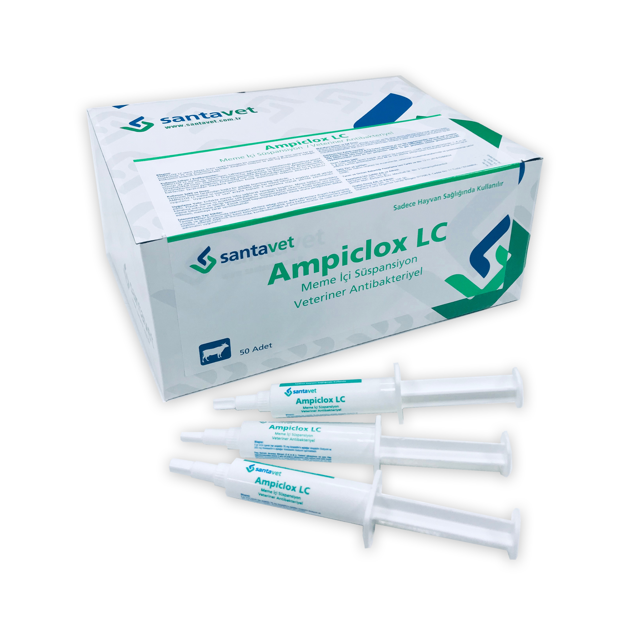 Ampiclox LC Bileşimi: Ampiclox LC steril, beyaz, krem renkli homojen bir süspansiyon olup, 5 gr ürün içeren her bir enjektörde 75 mg Ampisilin’e eşdeğer Ampisilin Sodyum ve 200 mg Kloksasilin’e eşdeğer Kloksasilin Sodyum bulunmaktadır. FARMAKOLOJİK ÖZELLİKLERAmpiclox LC meme içi süspansiyon; bir aminopenisillin olan ampisillin ile izoksazolil penisillin olan kloksasillinin dengeli bir kombinasyonunu içerir. Gelişme ve çoğalma sürecindeki bakterilerin hücre duvarı sentezinde rol alan transpeptidazları engellemek suretiyle bakterisid etki gösterirler. Ampisillin; mastitislere yol açabilen Gram pozitif bakteriler (Streptoococcus agalactiae, Streptococcus disgalactiae, Staphylococcus aureus, Staphylococcus epidermidis, Streptococcus uberis, Streptococcus zooepidermicus Streptococcus fecalis) ile Gram negatif bakterilere (Escherichia coli, Enterobacter acrogenes, Klebsiella sp. Proteus sp., Corynebacterium pyogenes, Pseudomonas aeruginasa, Shigella sp, Puriformis türleri, Pasteurella türleri) etki ederken beta-laktamaz üretenlere karşı etkisizdir. Kloksasillin; Gram pozitif bakterilere (Staphylococcus sp, Streptococccus sp) etki ederken beta-laktamaz üreten bakterilere karşı da dirençlidir. Böylece beta laktamaz üreten bakterileri de kapsayan geniş bir spektrum sağlanırken direnç oluşum riski de azaltılmaktadır. Bu kombinasyonu oluşturan etkin maddelere tek başına direnç gelişimi söz konusu iken kombinasyon içindeki sinerjik etki sayesinde, bakterilerin direnç geliştirmesi ile ilgili bilgi bulunmamaktadır. Kloksasilinin tek başına MICw değeri Staphylococcus aureus’a karşı 0.5 μg/ml iken; ampisilinin Staphylococcus spp. için 0,5 μg/ml, Streptococcus spp. için 0,25 μg/ml ve Escherichia coli suşu için 2 μg/ml’dir. Her iki etkin madde de ilaç da pasif difüzyon yoluyla kana geçer ve bir saat içinde tüm meme lobuna dağılır. 6 saat kadar meme dokunda varlığını sürdürür ve in füzyonla azalmaya başlar. Emilmeyen kısım sütle atılırken, emilen kısımlar esas olarak idrarla atılır (kloksasillin safrayla da atılır). KULLANIM SAHASI / ENDİKASYONLARIAmpiclox LC meme içi süspansiyon, Laktasyondaki ineklerin memelerinde penisillinaz pozitif olanlar da dahil olmak üzere; Streptococcus agalactiae, Streptococcus dysgalactiae, diğer Streptokokkal türler, Staphylococcus spp (penisiline dirençli ve duyarlı suşlar), Arcanobacterium (Corynebacterium) pyogenes, Escherichia coli’nin de bulunduğu duyarlı Gram (+) ve Gram (-) bakteriler tarafından meydana getirilen klinik mastitislerin tedavisi amacıyla kullanılır. Ampiclox LC KULLANIM ŞEKLİ VE DOZU