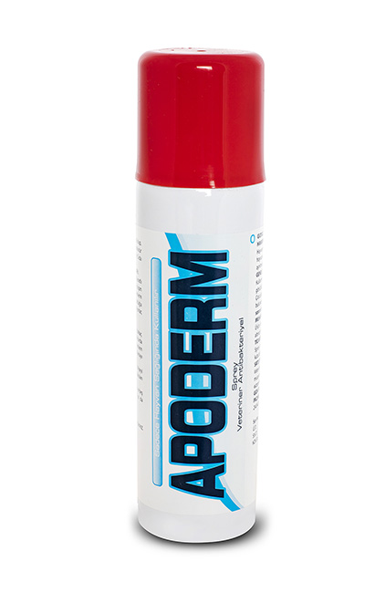 BİLEŞİMİ APODERM, yeşil renkli bir sprey (aerosol) olup, 100 ml’sinde, 2.15 gr Klortetrasiklin hidroklorür (2 gr Klortetrasiklin’e eşdeğer), 0.2 gr Gıda Mavisi 5 (CI Food Blue 5) bulundurur. FARMAKOLOJİK ÖZELLİKLERİ Klortetrasiklin, tetrasiklin grubuna ait olan geniş spektrumlu bir antibiyotiktir. Doğal yolla meydana gelen üç tetrasiklinden biridir. Tetrasiklinler bakteriyel 30S ribozomlarına bağlanır ve muhtemelen pek çok mekanizma ile protein sentezini inhibe ederler. Tetrasiklinler, genellikle bakteriyostatik olup başarılı bir şekilde kullanılması için uyumlu (yanıt veren) bir vücut savunma sistemi olması şarttır. Tetrasiklinler, yüksek konsantrasyonlarda, idrara geçebilirler ve buna bağlı olarak mikroorganizmaların sitoplazma zarının fonksiyonel bütünlüğünü kaybetmesine bağlı olarak, bakterisidal tarzda etki ederler. Tetrasiklinler, çoğalmakta olan mikroorganizmalara karşı daha etkilidirler ve pH 6- 6.5 arasında daha aktif olma eğilimleri vardır. Bu antibiyotik, aşağıdaki bakterilere karşı aktiftir: * Gram (+) ve Gram (-) Bakteriler: Streptococcus spp.,Haemophylus spp., Klebsiella spp., Clostridium spp., Fusobacterium spp Rickettsia, Clamydea, Protozoos, Theileria, Eperythzoom, Anaplasma Klortetrasiklin, perkutan yolla abzorbe olmaz, deriden lokal olarak etki eder (topikal uygulama). Renklendirici madde olarak kullanılan Gıda Mavisi 5 (CI Food Blue 5) ise tedavi edilen bölgenin belirginleştirilmesini sağlar. Klortetrasiklin, diğer tetrasiklinlerle karşılaştırıldığında gastrointestinal sistemde daha az abzorbe olur. Tetrasiklinler, genellikle vücut doku ve sıvılarına dağılırlar. Serebrospinal (beyin ve omurilik) sıvısındaki konsantrasyonlar oldukça düşüktür, fakat beyin ve omurilik zarları iltihaplanması durumunda yükselebilir. Tetrasiklinler idrar ve dışkı ile vücuttan atılır. Böbrekten temizlenmesi glomerular filtrasyon ile olur. Tetrasiklinin intravenöz dozunun % 60’a kadarı ve ağızdan verilen dozun %55’e kadarı değişime uğramadan idrar ile atılır; normal bir doz alındıktan 2 saat sonra idrarda, tetrasiklinin 300 μg/ml’sine kadar olan konsantrasyonlarına ulaşılabilir ve 12 saate kadar bu değer korunabilir. KULLANIM SAHASI/ENDİKASYONLARI APODERM, sığır, koyun, keçi, domuz, at, kanatlı hayvanlar, köpek ve kedilerde, kazara oluşan yaralar ya da tıbbi yaralar, at ve ineklerin toynaklarında açık yaraların sebep olduğu enfektif lezyonlar, parmak arası enfeksiyonlar, yara ve ağrıların tedavisinde kullanılır. KULLANIM ŞEKLİ VE DOZU Kullanmadan önce kutuyu çalkalayınız; birkaç saniye ya da lezyonu yeterli miktarda kapatacak şekilde püskürtünüz. Lezyonların seyrine veya ciddiyetine göre uygulamayı tekrarlayınız. Ürünü uygulamadan önce, yaralı bölgeyi temizleyin ve tüm pislikleri ve ölü dokuları uzaklaştırın. Hayvanın, uygulama yapılan yere, en az beş dakika süreyle temas etmesini ya da yalamasını önleyiniz. İSTENMEYEN/YAN ETKİLER Lokal deri reaksiyonları görülebilir. İLAÇ ETKİLEŞİMLERİ Mevcut değildir. DOZ AŞIMINDA BELİRTİLER, TEDBİRLER VE ANTİDOT Uygulama şekline bağlı olarak aşırı doza bağlı intoksikasyon görülmesi olası değildir. Uzun süreli tedavilerde, tedavi bittiğinde ortadan kaybolan, bazı deri hastalıkları tekrar görülebilir. GIDALARDAKİ İLAÇ KALINTILARI HAKKINDA UYARILAR Hayvanın acil olarak kesilmesi durumunda, hayvanın uygulama yapılmış olan bölgesi ayrılmalı ve tüketime sunulmamalıdır. KONTRENDİKASYONLARI Tetrasiklinlere aşırı duyarlı olduğu bilinen hayvanlarda kullanılmamalıdır. Göze ve göz çevresine uygulanmamalı, temasından kaçınılmalıdır. GENEL UYARILAR Kullanmadan önce ve beklenmeyen bir etki görüldüğünde veteriner hekime danışınız. Çocukların ulaşamayacağı yerlerde bulundurunuz. UYGULAYICININ ALMASI GEREKEN ÖNLEMLER ve HEKİMLER İÇİN UYARILAR Sprey, iyi havalandırılan alanda kullanılmalıdır. Uygulamayı, cereyan alan, açık bir yerde yapınız. Uygulama sırasında, buharını teneffüs etmeyiniz. Açık alev veya tutuşabilen materyal üzerine püskürtmeyiniz ve ürünü kullanırken gözlerinizden uzak tutunuz. Ambalajı direkt güneş ışığından uzak tutunuz ve 45ºC üzerindeki sıcaklıklara maruz bırakmayınız. Kolay alev alır, kullandıktan sonra dahi delmeyiniz veya yakmayınız. MUHAFAZA ŞARTLARI VE RAF ÖMRÜ Ürün, karanlık, kuru ve serin yerde 25ºC’nin altında muhafaza edildiğinde raf ömrü 3 yıldır. TİCARİ TAKDİM ŞEKLİ Sprey şeklinde, 335 ml’lik alüminyum kutularda satışa sunulur. KULLANIM SONU ATIK MATERYALİN İMHASI Böyle bir medikal üründen kalan ve kullanılmayan herhangi bir veteriner tıbbi ürün ya da atık materyal, yerel yönetmeliklere göre imha edilmelidir. |