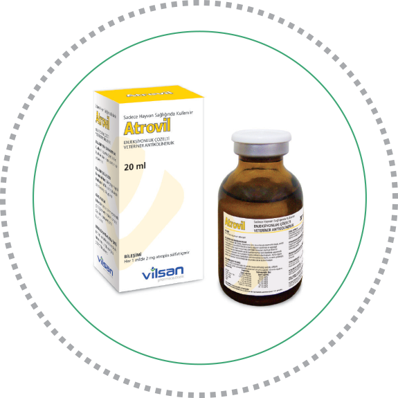 BİLEŞİMİ ENDİKASYONLAR KULLANIM ŞEKLİ VE DOZU ATROVİL Enjeksiyonluk Çözelti, parasempatolitik olarak deri altı yolla aşağıdaki dozlarda uygulanır.