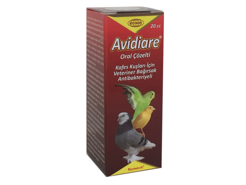 Avidiare Oral Çözelti Kafes Kuşları İçin Veteriner Bağırsak Antibakteriyeli BİLEŞİMİ: % 0,2 Nitrofurazon ihtiva eder. Sarı renkli bir Oral Çözeltidir. FARMAKOLOJİK ÖZELLİKLERİ: Muhabbet kuşu, kanarya, papağan ve diğer kafes kuşlarının içme suları ile aldıkları Nitrofurazon in vivo (dahilen) koşullarda 1.100.000 – 1.200.000 sıvı ve dokusal yoğunlukları arasında belirtilen bakteri türleri üzerinde kuvvetli bakteriyostatik etki gösterir. Açıklanan sıvı ve dokusal yoğunlukları daha da arttırıldığında Antibakteriyel etkisi bakterisit niteliğe dönüşür. Nitrofurazon’un etkili olduğu bakteriler : Gram-negatifler: Escherichia Coli, Salmonella (S.Pullorum, S. Gallinarum, S. Paratyphi, S. Enteritidis vb.), Pasteurella ( P. Septica, P. Avium, P. Multocida, vb.), Gram-pozitifler: Clostridia, Corynebacteria, Stafilakok, Streptokok ve Diplokoklara Diğerleri: Vibrio metchnikovi ve bazı protozonlara ( Eimeria sp.). KULLANIM SAHASI / ENDİKASYONLAR: Avidiare Oral Çözelti muhabbet kuşu, kanarya, papağan ve diğer kafes kuşlarının, Coli, Pasteurella, Salmonella, Paratifo ve Enfeksiyoz Enteritis gibi ishalle seyreden bağırsak enfeksiyonlarında ve koksidiyoz (kanlı ishal) hastalığında kullanılır. KULLANIM ŞEKLİ VE DOZU: Bir hasta kuş için, orta boy bir suluğa (75-100 cc) 2,5 cc Avidiare Oral Çözelti ilave edilir. Her gün suyu değiştirilerek taze ilaçlı su tekrar suluğuna konur. Bağırsak enfeksiyonlarına bağlı ishallerde 5-7 gün, koksidiyozda (kanlı ishal) 7-10 gün ilaç tatbikatına devam edilir. ÖZEL KLİNİK BİLGİLER VE HEDEF TÜRLER İÇİN ÖZEL UYARILAR: İlaç su ile daha kolay uygulanır. Arzu edildiğinde yemlerine de ilave edilebilir. Fakat hastalanmış kuşlar ilk önce yem yemeden kesilecekleri için ilacın su ile birlikte verilmesi daha emin bir metottur. İSTENMEYEN YAN ETKİLER: Kullanım şekline uyulduğu takdirde istenmeyen / yan etki görülmez. İLAÇ ETKİLEŞİMLERİ: Diğer ilaçlarla geçimsizliği yoktur. DOZ AŞIMINDA BELİRTİLER, TEDBİRLER VE ANTİDOT: Bilinen bir antidotu yoktur. Beklenmeyen bir etki görüldüğünde veteriner hekiminize başvurun. KONTRENDİKASYONLAR: Tedavi dozlarında kontrendikasyonu yoktur GENEL UYARILAR: Kullanmadan önce ve beklenmeyen bir etki görüldüğünde veteriner hekiminize danışınız. Çocukların ulaşamayacağı yerlerde bulundurunuz. MUHAFAZA ŞARTLARI VE RAF ÖMRÜ: Kendi ambalajı içinde, kuru ve serin yerde muhafaza ediniz. Raf ömrü imal tarihinden itibaren 4 yıldır. TİCARİ AMBALAJ ŞEKLİ VE MİKTARI: Karton kutu içinde, 20 cc’lik kahverengi cam şişede |