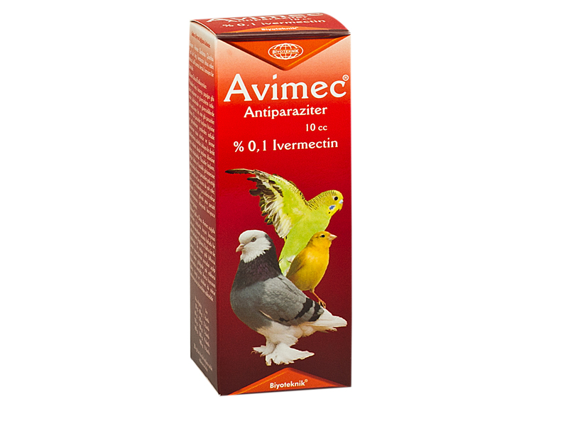 Avimec Damlatma Çözeltisi Kuşlar için İnsektisit / Akarisit Bileşimi: Avimec Damlatma Çözeltisi 1 ml’de 1 mg Ivermectin ihtiva eden renksiz-hafif sarımsı, berrak, homojen bir çözeltidir. Farmakolojik Özellikleri: Avimec Damlatma Çözeltisi’nin etkin maddesi olan Ivermectin bir Avermectin türevi olup Streptomyces avermitilis’in fermantasyon ürünüdür. Sentetik bir kemoterapötiktir. Ivermectin en az % 80 oranında 22-23 dihidroavermektin B1a ve en çok % 20 oranında 22-23 dihidroavermektin B1b komponentlerinden kuruludur. Ivermectin, parazitlerin motorik ganglion sinapsislerinde (nematodlar) veya nöromüsküler son plaklarda (artropodlar) Gama Amino Butirik Asit (GABA) salgısını arttırmak suretiyle klor (Cl) kanallarını açık tutarak motorik sinir impulsunun geçişini önler; parazit felç olur ve ölür. Ivermectin konak hayvana zarar vermeksizin parazitleri öldürür. Ivermectin sistemik bir insektisittir. Deriye uygulamada deriden absorbe olarak kan ve lenf yolu ile bütün vücuda dağılır. Ivermectin‘in etki mekanizmaları diğer antiparaziter ilaçlardan farklı olduğu için çapraz direnç söz konusu değildir. Kullanım Sahası/Endikasyonları: Kuşların üzerlerinde, kafeslerinde ve güvercinliklerde çok sayıda kene, bit, sinek ve mite gibi parazitler bulunur. Bu parazitler kuşların büyüme ve gelişmelerine, yemlerden istifade etmelerine mani olurlar ve üreme kabiliyetlerini azaltırlar, dolayısı ile direkt veya endirekt olarak kuşların ölümüne sebep olmaktadırlar. Parazitler kuşların, yorgun, bitkin ve hastalıklı görünmesine sebep olurlar. Avimec Damlatma Çözeltisi parazitleri yok ettiği gibi yumurta ve larvalarını da yok eder, kafes ve güvercinlikteki parazitlerin tekrar kuşların üzerine gelerek yeni parazit enfestasyonunu önleyerek koruyucu etkisini gösterir. Avimec Damlatma Çözeltisi Güvercin, muhabbet kuşu, kanarya, papağan gibi kafes kuşlarının kene (Argus persicus, Argus reflex), bit (Columbicola columbae), sinek ve mite gibi dış parazitlerine karşı kullanılır. Kullanım Şekli ve Dozu: Avimec Damlatma Çözeltisi aşağıda belirtilen dozlarda kuşun boyun arkasında omuzların arasına damlatılır. Bir hafta ara ile 3 defa tekrarlanmalıdır. Bu tedavi şekli bilhassa parazit yumurtalarının sonradan açılıp larva haline geldiğinde yok edilmesi bakımından önemlidir. Ayrıca hayvanın kafesi, tüneği ve sulukları da reenfestasyona karşı dezenfekte edilmelidir. Avimec Damlatma Çözeltisi her 60 g canlı ağırlığa yaklaşık 1 damla (0,05 ml) damlatılır.