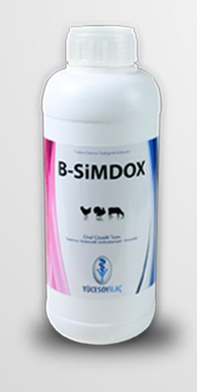 Bileşimi Sarımsı berrak çözeltinin her mL.si, 100 mg doksisiline eşdeğer doksisiklin hiklat ve 20 mg bromheksin içerir. Kullanım Yerleri B–SİMDOX Oral Çözelti, etçi hindi ve tavuklarda, Tavuk-hindi Kronik solunum sistemi hastalığı ( M. gallicepticum ), Ornithosis, Enfeksiyöz Synovitis ( M.synovia ), Kolera ( P. Multocida). Kullanım Şekli ve Dozu Veteriner hekim tarafından başka şekilde önerilmediği taktirde; Tavuk ve hindilerde farmakolojik doz: Doksisiklin, 10-20 mg / kg canlı ağırlık / gün, Bromheksin, 0.5 mg / kg canlı ağırlık / gün, Pratik Doz Tavuk ve hindilerde pratik doz: 100 kg canlı ağırlık için 10-20 mL B-SİMDOX; Tedaviye 5 gün süreyle devam edilir. |