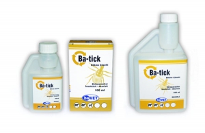 BA-TİCK Bileşimi Ba-tick her ml’de 10 mg flumetrin içeren, kahverengiden-kırmızı kahveye değişen renkte berrak sıvıdır. Farmakolojik özellikler Ba-tick Dökme Çözelti’nin etkin maddesi olan flumetrin piretroid Tip II grubundan, sentetik bir insektisittir. Flumethrin diğer sentetik piretroitler gibi temas yolu ile etki eder. Piretroitler genel olarak yağ dokusuna affinite duyarlar. Derinin stratum korneum tabakasındaki hücreler arası bölgedeki yağlı dokularda birikerek tüm deri yüzeyine yayılır. Flumethrin ile temasa geçen bir parazitin sinir dokusundaki sodyum kanalları sürekli açık kalır ve bu şekilde sinir iletimi bloke edilmiş olur. Bu da parazitlerin felcine neden olur. Sodyum geçirgenliğinin uzun süreli olarak geciktirilmesinde fenoksi-florobenzil alkol kısmındaki α-siyano grubunun sorumlu olduğu düşünülmektedir. Deri yoluyla uygulanan flumetrin çok düşük düzeylerde emildiğinden kalıntı sorunu oluşturmaz. Flumetrin deriye uygulandığında deriye geçerek vücutta dağılır. Lipofilik karakterde bir bileşik olduğu için de vücutta en fazla yağ dokuda, karaciğer ve böbrekte birikir. Flumetrin dökme tarzında uygulandıktan 1 gün sonra sırt derisinde 670 ppm, kalça derisinde 228,3 ppm, scapula bölgesindeki deri yüzeyinde 61,9 ppm, meme derisinde 14,9 ppm, linea alba üzerinde ise 2,7 ppm olarak ölçülmektedir. Ba-tick sistemik etkili değildir. Çok az miktarlarda deriden emildiğinden kalıntı değerleri kabul edilen kalıntı limitlerinin çok altında kalmaktadır. Metabolitleri (flumethrin asit) idrar ve dışkı ile atılır. Ba-tick uygulandıktan 4-8 hafta boyunca deri üzerindeki etkinliğini korur. Bu süreyi, çevre ısısı ve kene miktarının yoğunluğu gibi faktörler etkiler. Duyarlı parazitlerin, hem ergin hem de larvaları üzerinde etkilidir. İlaç, duyarlı parazitlerdeki yıkımlayıcı enzimatik etkilere ve çevre koşullarına karşı dayanıklı olduğundan, uzun süreli kalıcı ve koruyucu etkinliğe de sahiptir. Hayvanların sırtına dökülerek uygulandığında, tüm vücut yüzeyine yayılır ve aktif maddesi deriden emilmediğinden, uzun süre insektisid etkinliğini korur. Tüm evcil hayvanlarda ve barınaklarda sıklıkla karşılaşılan başlıca dış parazit çeşitlerine yönelik geniş bir antiparaziter etki gösterir. Flumetrin olgun keneler üzerinde etkisini, kenelerin larva ve nimfleri üzerinde öldürücü olarak ve dişi kenelerin canlı yumurta yapmalarını önlemek ve dolayısıyla üremelerini durdurmak suretiyle gösterir. Toksisite bilgileri: Flumetrinin akut oral LD50 değeri dişi Wistar farelerinde 41-3849 mg/kg’dır. ÖZEL KLİNİK BİLGİLER VE HEDEF TÜRLER İÇİN ÖZEL UYARILAR Ba-tick Dökme Çözelti, yalnızca dış parazit enfestasyonlarına karşı sırta ve parazitli bölgelere dökülerek uygulanır. Önerilen sağaltım dozları aşılmamalıdır. Aşırı sıcak havalarda ilaçlamadan kaçınılmalıdır. Hayvanların göz ve ağız çevreleri ile ağır lezyonlu deri bölgelerine uygulanmamalıdır. Paraziter enfestasyondan korunmak için sürüye yeni girecek hayvanların da ilaçlanması önerilir. Etkili bir eradikasyon için barınak mücadelesi de ihmal edilmemelidir. Uygulama sonrası hayvanların su kaynaklarına girmelerine ve birbirlerini yalamalarına engel olacak tedbirler alınmalıdır. İlaçlama sonrasında hayvanın üzerine yağacak yağmur, ilacın dişi kenelerin üremelerini engelleyici etkisini azaltmaz. Buna karşın çevresel ısı ve kene yoğunluğu ilacın koruyucu etki süresini değiştirebilir. Gebelikte kullanım: Gebelikte kullanımına ilişkin bir komplikasyon bildirilmemiştir İSTENMEYEN ETKİLER Seyrek olarak ilacın tatbikatını izleyen 48 saatlik süreç içinde bazı hayvanlarda hafif huzursuzluk belirtileri görülebilir. Bu yan etkiler geçici ve kısa sürelidir. Belirtilen dozun aşılmamasına dikkat edilmelidir. İLAÇ ETKİLEŞİMLERİ Flumetrin ve diğer piretroitler, in vivo koşullarda organik fosforlu insektisidlerle birlikte veya kombinasyon halinde kullanıldıkları zaman karaciğer mikrozomal enzim sistemine yönelik inhibe edici etkinlikleri ve nörotoksik etkileri artar, bu durum ilacın memelilere yönelik zehirliliğini arttırabilir. İmmun sistemi inhibe etkileri daha belirgin hale gelir. DOZ AŞIMINDA, BELİRTİLER, TEDBİRLER VE ANTİDOT Flumetrinin, deri yoluyla uygulanmasında toksisitesi düşüktür. Beklenmeyen bir etki görüldüğünde veteriner hekime başvurulmalı, semptomatik tedavi uygulanmalıdır. Bilinen herhangi bir antidotu bulunmamaktadır. GIDALARDAKİ İLAÇ KALINTILARI HAKKINDA UYARILAR İlaç Kalıntı Arınma Süresi (i.k.a.s.): Sığırlarda et ve süt için 0 “sıfır” gün, koyunlarda et için 0 “sıfır” gündür. İnsan tüketimi için süt elde edilen koyunlara uygulanmaz. KONTRENDİKASYONLAR Aktif maddeye hassasiyeti olan hayvanlarda kullanılmamalıdır. GENEL UYARILAR Kullanmadan önce ve beklenmeyen bir etki görüldüğünde veteriner hekime danışınız. Çocukların ulaşamayacağı yerde bulundurunuz. Gıda ve yemlerden uzakta bulundurunuz. Ambalajı hasarlı ürünleri almayınız. UYGULAYICININ ALMASI GEREKEN ÖNLEMLER VE HEKİMLER İÇİN UYARILAR Uygulayıcıların koruyucu iş elbisesi giyinmeleri ve lastik eldiven kullanmaları gerekir. İlaçlama iyi havalandırılabilen ortamlarda veya açık havada yapılmalıdır. Uygulayıcıların ilacın cilt ve gözlerine bulaştırmamalarına özen göstermeleri gerekir. Bulaşma durumunda, en kısa sürede temiz su ve sabunla iyice yıkanmalıdır. Uygulama aşamasında hiçbir şey yenilip, içilmemelidir. Uygulama işleminden sonra, eller ve yüz yıkanmalıdır. Yanlışlıkla ve kaza sonucu ağızdan alındığında, kişi kusturulmaya çalışılmalı ve en kısa sürede doktora başvurulmalıdır. MUHAFAZA ŞARTLARI VE RAF ÖMRÜ Işıktan koruyarak, kuru ve serin bir yerde (2