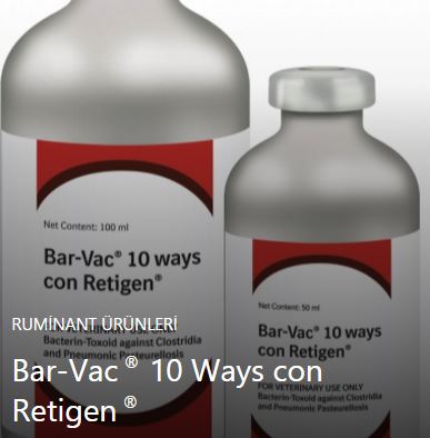 Bar-Vac® 10 Ways con Retigen® Sığır ve koyunlarda Klostridiya ve Pnömonik Pastörelloza karşı aktif immünizasyonda kullanılan inaktif Bakterin-Toksoid Aşı Bileşimi Beher doz Bar Vac® 10 ways con Retigen® içeriğinde