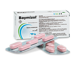 BİLEŞİMİ Açık pembe renkli ve iki kırılma noktası olan her bir Baymizol tableti 600 mg triklabendazol ve 375 mg levamizole eşdeğer 441 mg levamizol HCI ihtiva eder. FARMAKOLOJİK ÖZELLİKLERİ Baymizol Oral Tablet benzimidazol grubu antihelmintiklerden triklabendazol ve imidatiyazol grubundan levamizol ihtiva eder. Bu kombinasyon sığır ve koyunlarda mide, bağırsak ve akciğer nematodları ile karaciğer kelebeği Fasciola hepatica ve Fasciola gigantica'ya karşı etkilidir. Triklabendazol, karaciğer trematodlarının ergin ve gençlerine etkilidir, parazitlerin fumarat redüktaz enzimlerini inhibe ederek karbonhidrat metabolizmalarını bozar ve ölümlerine neden olur. Oral uygulamadan sonra ortalama 8-24 saat içinde serumda maksimum konsantrasyona ulaşır, daha çok karaciğerde yoğunlaşır ve metabolize olur. Metabolitleri siilfon, sülfoksit ve keton şeklinde hayvan türüne göre değişen oranlarda yüksek miktarda dışkı ile atılır. Uygulamayı izleyen 10'uncu günün sonunda verilen dozun tamamına yakını; büyük ölçüde dışkı ile az miktarda idrarla vücuttan atılır. Levamizol, tetramizolün bir levo-S izomeridir ve mide bağırsak, akciğer kıl kurtlarına etkili bir antihelmintiktir. Etkisi pirantelinkine benzer şekilde olup; helmintlerin kasları ve gangliyonlarının sürekli uyarılması sonucu oluşan felç ile birlikte fumarat redüktazın faaliyetinin engellenmesine dayanır. Oral uygulama sonrası sindirim kanalından hızla emilerek 1-2 saat içinde en yüksek plazma yoğunluğuna ulaşır ve tüm vücut kesimlerine dağılır. Vücutta büyük ölçüde biyotransformasyona uğrar. Plazma yarı ömrü 4-6 saat arasındadır. Vücuttan atılımı büyük ölçüde dışkı ile kalanı da idrar ile gerçekleşir. KULLANIM SAHASI/ENDİKASYONLAR Baymizol Oral Tablet sığır ve koyunlarda karaciğer trematodlarından Fasciola hepatica ve Fasciola gigantica'nın ergin ve gençlerine, mide, bağırsak ve akciğer kıl kurtlarına karşı kullanılır. Başlıca etkili olduğu parazit türleri şunlardır: Karaciğer kelebekleri (genç ve ergin dönemleri): Fasciola hepatica, F. gigantica. Mlde-bağırsak kıl kurtları ve yuvarlak kurtlar: Ostertagia sp., Haemonchus sp., Trichostrongylus sp., Cooperia sp., Oesophagostomum sp., Nematodirus sp., Bunostomum sp., Chabertia ovina. Göz paraziti: Thelazia sp. Akciğer kıl kurtları: Dictyocaulus sp. (özellikle D. filaria) KULLANIM ŞEKLİ VE DOZU Baymizol tabletleri veteriner hekim tarafından başka şekilde tavsiye edilmediği sürece, sığır ve koyunlarda her 50 kg canlı ağırlık için 1 tablet oral yolla uygulanır. Bu doz, farmakolojik olarak 12 mg/kg CA triklabendazole ve 7,5 mg/kg CA levamizole tekabül eder. Önerilen doz, ergin ve 1 haftalıktan itibaren genç Fasciola sp. ile mide, bağırsak ve akciğer kıl kurtlarının eliminasyonu için yeterlidir. Triklabendazol dozu her kg canlı ağırlık için 15 mg'a çıkartıldığında 1 günlük genç Fasciolalar da elimine edilir. Bu doza ulaşmak için ortalama 50 kg CA'a 1 1/3 tablet uygulanır. Tabletler elle veya bir tablet maşası ile dilin kaidesine bırakılarak bol su verilerek yutturulur. ÖZEL KLİNİK BİLGİLER VE HEDEF TÜRLER İÇİN UYARILAR İlkbaharda hayvanlar meraya çıkarılırken ve son baharda meradan döndükten sonra yılda iki uygulama yapılması tavsiye edilir, bu parazitlerin yaşam döngüsü göz önüne alındığında özellikle açık işletmeler için etkili bir paraziter mücadele sağlar. Zafiyet geçiren, ağır stres altında, hasta hayvanlara uygulama yapılırken doza dikkat edilmelidir. Yapılacak diğer bir uygulama en erken 3 hafta sonra olmalıdır. Sığır ve koyunların periyodik olarak antihelmintik ilaçlar ile ilaçlanmaları, et, süt ve yapağı kalitesi gibi verim artışı sağlar. Özellikle koyunlara tabletler verildikten sonra, çok kolayca tabletlerin tamamını ya da, bir kısmını ağızlarından atabilirler. Bu nedenle yeterince su verilerek tabletleri yutmalarına yardımcı olunur ve tabletleri yuttuklarından kesin emin olunur. Su verilirken ya da ilaç verilirken koyunların dilleri tutulmaz. İSTENMEYEN ETKİLER Sığır ve koyunlarda tavsiye edilen sağaltım dozlarında oral yolla kullanıldığında önemli bir yan etkisi yoktur. Hafif nefes darlığı, hipotansiyon ve ürinasyon gibi yan etkileri geçici olup bir iki saat içinde kendiliğinden kaybolur. İLAÇ ETKİLEŞİMLERİ • Piperazin tuzları ile antagonistik etki nedeniyle birlikte kullanılmamalıdır. • Tetrahidroprimidinler (pirantel ve morantel tuzları) ile birlikte kullanılması toksisite artışına yol açabilir. • Nikotinik etkileri nedeniyle organik fosforlu bileşiklerle (triklorfon, diklorvos, vs), fenotiyazinler, dietilkarbamazin, prokain ve fenikollerle birlikte kullanılmamalıdır. DOZ AŞIMINDA BELİRTİLER, TEDBİRLER VE ANTİDOT Doz aşımında bulantı, kusma, kas titremeleri, çırpınmalar, solunum güçlüğü, kalp atım hızında yavaşlama, hipotansiyon, ürinasyon, yere uzanma ve solunum yetmezliği ve ölüm gözlenir. Triklabendazol ise daha güvenlidir. Zehirlenme durumunda semptomatik tedavi uygulanmalıdır. GIDALARDAKİ İLAÇ KALINTILARI HAKKINDA UYARILAR İlaç kalıntı arınma süresi (i.k.a.s.): Sağaltım süresince ve son ilaç uygulamasından sonra eti için yetiştirilen sığır ve koyunlar 28 gün geçmeden kesime gönderllmemelldlr. İnsan tüketimi İçin süt elde edilen sağmal sığır ve koyunlara uygulanmamalıdır. KONTRENDİKASYONLAR • Levamizol veya triklabendazole aşırı duyarlılık gösteren hayvanlarda kullanılmamalıdır. • Böbrek yetmezliği bulunan hayvanlarda kullanılmamalıdır. • Sütçü ırktan genç hayvanlar ve yeni doğmuş yavrularda kullanılmamalıdır. • Organik fosforlu bileşiklerle birlikte kullanımı levamizole bağlı olarak kontrendikedir. Bu nedenle ilaç uygulamasından 14 gün önce ve 14 gün so