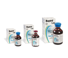 Bileşimi Hafif sarımtrak ve partikülsüz her 1 ml Baytril %10 çözelti 100 mg Enrofloksasin içerir. FARMAKOLOJİK ÖZELLİKLER Baytril %10 enjeksiyonluk çözeltinin aktif maddesi enrofloksasin, florokinolon grubu antibiyotiklerden olup, özellikle yüksek bakterisidal etkiye sahip antibakteriyel bir ilaçtır. Bu maddenin geniş antibakteriyel aktivite spektrumu mikoplazmalar, gram negatif ve gram pozitif bakteriler ile birlikte anaerobik patojen bakterileri içerir. Enrofloksasin, DNA'nın üremesinde önemli rol oynayan bakteriyel jiraz enzimine etki ederek onun görevini yapmasına mani olur. Bu enzimin inhibe edilmesi bakteriyel sentezlerin belli dönemlerini bloke ederek fonksiyonel bozukluklara sebep olur; bu da bakterinin ölümüne yol açar. Başlıca duyarlı bakteriler; E.coli, Salmonella sp., Enterobacter sp., Serratia sp., Proteus sp., Klebsiella sp., Shigella sp., Yersinia sp., Moraxella sp., Acinobacter sp., Actinobacillus sp., Pasteurella sp., Leptospira sp., Citrobacter sp., Haemophilus sp., Ehrlichia sp., Coxiella brunetti, metisiline ve gentamisine dirençli olanlarda dahil Staphylococcus sp., penisiline dirençli olanlarda dahil N.gonorrhoeae, N. meningiditis, Corynebacterium sp., Chlamydia sp., V.cholerae, Mycoplasma sp.'dir. Strep. suis, Strep. agalactia, Strep. dysgalactia, Strep. zooepidemicus, R.equi, Mycobacterium sp. orta derecede duyarlılık gösterir. Anaerobik kokların çoğu, Clostridium sp., Bacteroides sp. ve Ps. maltophila kinolonlara genellikle az duyarlı veya dirençlidir. Baytril, uygulamadan 0,5-2 saat sonra, uygulanış metoduna bakılmaksızın maksimum serum seviyesine ulaşır ve 24 saat süre ile hep aynı terapötik seviyede kalır. Enrofloksasin lipofilik özelliğinden dolayı, lipid içeren dokulara iyi derecede penetre olur. Özellikle fagositler içinde birikme özelliğinden dolayı hücre içi enfeksiyonların sağaltımında oldukça etkilidir. Biyotransformasyon karaciğerde olur. Enrofloksasin değişmemiş olarak yada siprofloksasin ve diğer kinolon metobolitlerine dönüşerek dışkı ve idrar ile atılır. Araştırmalar sonunda ratlar için LD50 değeri terapötik dozun (2.5 mg/kg) 2000 katı olarak tesbit edilmiştir. KULLANIM YERİ/ENDİKASYONLAR Sığır ve koyunlarda duyarlı gram negatif ve gram pozitif bakteriler ile Mycoplasma sp. tarafından meydana getirilen solunum, sindirim sistemi enfeksiyonları, diğer yumuşak doku enfeksiyonları ve viral enfeksiyonlara eşlik eden sekonder bakteriyel enfeksiyonların tedavisinde kullanılır. Sığır ve koyunlarda başlıca Mycoplasma enfeksiyonları (Sığırlarda bulaşıcı pleuropneumonia, koyunlarda Agalaksia gibi), E.coli enfeksiyonları (Colibacillosis, Colisepticemia gibi), Salmonellosis (Salmonella abortusu ve enteritisi), Pasteurellosis enfeksiyonlarında, ayrıca mastitis ve metritislerde lokal tedaviyi desteklemek amacıyla kullanılır. UYGULAMA ŞEKLİ VE DOZU Veteriner hekim tarafından başka şekilde tavsiye edilmediği taktirde; Baytril %10 enjeksiyonluk çözelti deri altı, kas içi ve intravenöz olarak kullanılabilir. Baytril'in tavsiye edilen günlük dozu 2.5mg/kg canlı ağırlık hesabı ile (40 kg canlı ağırlık için 1 cc.) 3 gündür. Sadece şiddetli üst solunum sistemi hastalıklarında ve Salmonellosis'de 5 mg/kg canlı ağırlığa (her 40 kg. canlı ağırlık için 2 cc.) 5 gün süreyle tavsiye edilmektedir. ÖZEL KLİNİK BİLGİLER VE HEDEF TÜRLER İÇİN UYARILAR Laboratuvar hayvanları (ratlar, fareler, kobaylar) üzerinde yapılan uygulamalar terapötik dozun 10 misli fazla dozların verilmesi ile tespit edilmiştir. Kanın kompozisyonu üzerine, kan glikozu ve serum trigliseritleri üzerine ve kanın koagülasyonu üzerine hiçbir menfi etkisi olmadığı ortaya konmuştur. İdrarda ve elektrolitlerde yine hiçbir değişiklik olmamıştır. Merkezi sinir sistemi üzerindeki araştırmalar açık bir araz göstermemiştir. Antialerjik özelliklerinin tesbiti için yapılan invitro testlerde, peritoneal hücrelerin büyük çoğunluğunda ne antialerjik ne de pseudoalerjik etki görülmemiştir. Kardiovasküler sistem üzerinde yapılan toksikolojik çalışmalar yine olumsuz bir etki olduğunu göstermemiştir. Bütün bu çalışmalar Enrofloksasin'in normal tedavi dozlarında ve normalden yüksek dozlarda, vital parametreler üzerinde herhangi bir yan etkisi olmadığını göstermektedir. DNA üzerinde yapılan bozuklukları tesbit için Unscheduled DNA Synthesis testi uygulanmıştır. Bu test sistemleri Enrofloksasin'in hiçbir mutajenik etkisi olmadığını göstermiştir. 210mg/kg ve 875mg/kg dozlarda uygulanınca fötüsün canlı ağırlığında hafif düşme olmuştur ki bu en küçük hayvana en yüksek doz uygulanması sonucudur. 50mg/kg c.a. üzerinden tatbik edilen Enrofloksasin'in erkek ratlar ve onların yavrularına hiçbir yan etkisi olmamıştır. Enrofloksasin'in mutajenik etkisi üzerindeki çalışmalar Salmonella mikrozome test (Amest-test) ve Çin hamsterlerinin ovariel hücreleri üzerinde (CH-HGPRT leri mutasyon tayini) yapılmıştır ve negatif çıkmıştır. Gebelikte kullanım: Gebe sığırlara gebeliğin kritik 4 değişik periyodunda 15 mg/kg dozda 15 gün süreli enrofloksasin uygulanmış ve reprodüktif parametrelere bir yan etki oluşturmamıştır. Köpeklerde doğumdan 14, 45 ve 90 gün önceden başlayan, 10 günlük 5-15 mg/kg canlı ağırlık/gün enrofloksasin uygulamalarında libido, gebelik oranı ve doğum yavru sayısı üzerine bir etkisi görülmemiştir. Yine köpeklerde gebeliğin ilk 10 gününden başlayarak laktasyonun ilk 28 gününüde kapsayan çalışmalarda köpeklerde yan etkisi görülmemiştir. Rat ve şinşilalarda teratojenik etkisine rastlanmamıştır. Rat ve şinşilalarda fötotoksik doz sırayla 50 ve 25 mg/kg canlı ağırlık olarak belirlenmiştir. İSTENMEYEN /YAN ETKİLERİ Kinolonlar nadiren çırpınmalara neden olabilirler. Bu nedenle merkezi