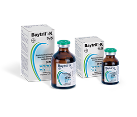 BİLEŞİMİ 1 ml sarımtrak çözelti 50 mg Enrofloksasin ihtiva eder. FARMAKOLOJİK ÖZELLİKLERİ Baytril %5 enjeksiyonluk çözeltinin aktif maddesi enrofloksasin, florokinolon grubu antibiyotiklerden olup, özellikle yüksek bakterisidal etkiye sahip antibakteriyel bir ilaçtır. Bu maddenin geniş antibakteriyel aktivite spektrumu mikoplazmalar, gram negatif ve gram pozitif bakteriler ile birlikte anaerobik patojen bakterileri içerir. Enrofloksasin, DNA'nın üremesinde önemli rol oynayan bakteriyel jiraz enzimine etki ederek onun görevini yapmasına mani olur. Bu enzimin inhibe edilmesi bakteriyel sentezlerin belli dönemlerini bloke ederek fonksiyonel bozukluklara sebep olur; bu da bakterinin ölümüne yol açar. Başlıca duyarlı bakteriler; E.coli, Salmonella sp., Enterobacter sp., Serratia sp., Proteus sp., Klebsiella sp., Shigella sp., Yersirıia sp., Moraxella sp., Acino- bacter sp., Actinobacillus sp., Pasteurella sp., Leptospira sp., Citrobacter sp., Haemophilus sp., Ehrlichia sp., Coxiella brunetti, metisiline ve gentamisine dirençli olanlarda dahil Staphylococcus sp., penisiline dirençli olanlarda dahil N. gonorrhoeae, N. meningiditis, Corynebacterium sp., Chlamydia sp., V. cholerae, Mycoplasma sp.'dir. Strep. su/s, Strep. agalactia, Strep. dysgalactia, Strep. zooepidemicus, R. equi, Mycobacterium sp. orta derecede duyarlılık gösterir. Anaerobik kokların çoğu, Clostridium sp., Bacteroides sp. ve Ps. maltophila kinolonlara genellikle az duyarlı veya dirençlidir. Baytril, uygulamadan 0,5-2 saat sonra, uygulanış metoduna bakılmaksızın maksimum serum seviyesine ulaşır ve 24 saat süre ile hep aynı terapötik seviyede kalır. Enrofloksasin lipofilik özelliğinden dolayı, lipid içeren dokulara iyi derecede penetre olur. Özellikle fagositler içinde birikme özelliğinden dolayı hücre içi enfeksiyonların sağaltımında oldukça etkilidir. Biyotransformasyon karaciğerde olur. Enrofloksasin değişmemiş olarak yada siprofloksasin ve diğer kinolon metobolitlerine dönüşerek dışkı ve idrar ile atılır. Araştırmalar sonunda ratlar için LD50 değeri terapötik dozun (2.5 mg/kg) 2000 katı olarak tespit edilmiştir. ENDİKASYONLAR/KULLANIM SAHASI Baytril-K %5 sığır, koyun, kedi ve köpeklerde duyarlı gram negatif ve gram pozitif bakteriler ile Mycoplasma sp. tarafından meydana getirilen solunum, sindirim sistemi enfeksiyonları, diğer yumuşak doku enfeksiyonları ve viral enfeksiyonlara eşlik eden sekonder bakteriyel enfeksiyonların tedavisinde kullanılır. Sığır ve koyunlarda başlıca Mycoplasma enfeksiyonları (Sığırlarda bulaşıcı pleuropneumonia, koyunlarda Agalaksia gibi), E.coli enfeksiyonları (Colibacillosis, Colisepticemia gibi), Salmonellosis (Salmonella abortusu ve enteritisi), Pasteurellosis enfeksiyonlarında, ayrıca mastitis ve metritislerde lokal tedaviyi desteklemek amacıyla kullanılır. Köpek ve kedilerde ise duyarlı bakterilerin oluşturduğu sindirim, solunum ve ürogenital sistem enfeksiyonları ile deri, sekonder yara enfeksiyonları ve otitis externa da kullanılabilir. UYGULAMA ŞEKLİ VE DOZAJ Veteriner hekim tarafından başka şekilde tavsiye edilmediği taktirde; Sığır, koyun: Baytril-K %5 dana ve koyunlarda günde 10 kg canlı ağırlığa kadar 0,5 ml dozda (2,5 mg/kg canlı ağırlık/ gün.) deri altı, kas içi veya damar içi yolla üç gün boyunca uygulanır. Salmonellosis veya şiddetli solunum yolu enfeksiyonlarında dozun günde 10 kg canlı ağırlığa 1 ml'e (5 mg/kg) yükseltilmesi tavsiye edilmektedir. Bir enjeksiyon noktasına sığırlarda 10 ml'nin, koyunlarda 5 ml'nin üzerinde ilaç uygulanmamalıdır. Köpek ve kedi: Baytril-K %5 köpek ve kedilerde günde 10 kg canlı ağırlığa 1 ml dozda (5 mg/kg canlı ağırlık/gün) derialtı yolla 5 gün boyunca uygulanır. Baytril-K %5 enjeksiyonluk çözelti doz tablosu ÖZEL KLİNİK BİLGİLER VE HEDEF TÜRLER İÇİN UYARILAR Laboratuvar hayvanları (ratlar, fareler, kobaylar) üzerinde yapılan uygulamalar terapötik dozun 10 misli fazla dozların verilmesi ile tespit edilmiştir. Kanın kompozisyonu üzerine, kan glikozu ve serum trigliseritleri üzerine ve kanın koagüiasyonu üzerine hiçbir menfi etkisi olmadığı ortaya konmuştur, idrarda ve elektrolitlerde yine hiçbir değişiklik olmamıştır. Merkezi sinir sistemi üzerindeki araştırmalar açık bir araz göstermemiştir. Antialerjik özelliklerinin tesbiti için yapılan invitro testlerde, peritoneal hücrelerin büyük çoğunluğunda ne antialerjik ne de pseudoalerjik etki görülmemiştir. Kardiovasküler sistem üzerinde yapılan toksikolojik çalışmalar yine olumsuz bir etki olduğunu göstermemiştir. Bütün bu çalışmalar Enrofloksasin'in normal tedavi dozlarında ve normalden yüksek dozlarda, vital parametreler üzerinde herhangi bir yan etkisi olmadığını göstermektedir. DNA üzerinde yapılan bozuklukları tesbit için Unscheduled DNA Synthesis testi uygulanmıştır. Bu test sistemleri Enrofloksasin'in hiçbir mutajenik etkisi olmadığını göstermiştir. 210 mg/kg ve 875 mg/kg dozlarda uygulanınca fötüsün canlı ağırlığında hafif düşme olmuştur ki bu en küçük Gebelikte kullanım: Gebe sığırlara gebeliğin kritik 4 değişik periyodunda 15 mg/kg dozda 15 gün süreli enrofloksasin uygulanmış ve reprodüktif parametrelere bir yan etki oluşturmamıştır. Köpeklerde doğumdan 14, 45 ve 90 gün önceden başlayan, 10 günlük 5-15 mg/kg canlı ağırlık/gün enrofloksasin uygulamalarında libido, gebelik oranı ve doğum yavru sayısı üzerine bir etkisi görülmemiştir. Yine köpeklerde gebeliğin ilk 10 gününden başlayarak laktas- yonun ilk 28 gününüde kapsayan çalışmalarda köpeklerde yan etkisi görülmemiştir. Rat ve şinşilalarda teratojenik etkisine rastlanmamıştır. Rat ve şinşilalarda fötotoksik doz sırayla 50 ve 25 mg/kg canlı ağırlık olarak belirlenmiştir. İSTENMEYEN /YAN ET