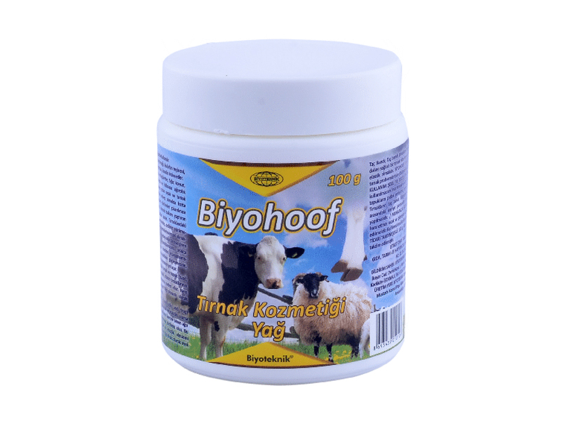 Bileşimi: Biyohoof Tırnak Bakım Yağı, ketenyağı, paça yağı, zeytinyağı, kolofon reçinesi, beyaz balmumu, turpentin, çam katranı, lanolin ihtiva eder. |