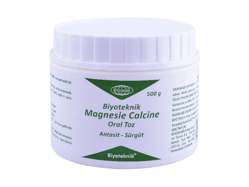 Biyoteknik Magnesie Calcine Oral Toz Veteriner Antasit – Sürgüt BİLEŞİMİ: %95-99 Magnezyum Oksit ihtiva eder. Beyaz renkli hafif ve kaygan halde bir oral tozdur. FARMAKOLOJİK ÖZELLİKLERİ: Antiasit, laksatif ve purgatif etkiye sahiptir. KULLANIM SAHASI / ENDİKASYONLAR: Hipersidite, kontipasyon, zehirlenmelerde kullanılabildiği gibi ayrıca magnezyum yetmezliğinde (çayır tetanisi) sağıtım aracı olarak kullanılır. KULLANIM ŞEKLİ VE DOZU: Kullanım miktarının 10 katı ılık su ile karıştırılarak hayvanlara içirilir. Yukarıdaki antiasit ve laksatif etki gösteren dozun 2-3 katı kullanıldığında purgatif etki sağlanır. Gebelikte Kullanım: Gebe hayvanlarda da kullanılır. İSTENMEYEN YAN ETKİLER: Kullanım şekline uyulduğu takdirde istenmeyen / yan etki görülmez. İLAÇ ETKİLEŞİMLERİ: Diğer ilaçlarla geçimsizliği yoktur. DOZ AŞIMINDA BELİRTİLER, TEDBİRLER VE ANTİDOT: Tavsiye edilen doz aşılmamalıdır. Beklenmeyen bir etki görüldüğünde Veteriner hekiminize başvurunuz. GIDALARDA İLAÇ KALINTI UYARILARI: İlaç Kalıntı Arınma Süresi (i.k.a.s.) “0” gündür. KONTRENDİKASYONLARI: Mg iyonlarının emilme riski bulunmasından ötürü (mide-barsak mukozasının yangılı durumlarında) özellikle böbrek yetmezliği olan hastalarda kullanılmamalıdır. Böbrek yetmezliği olan hayvanlarda sinirsel, nöromuskuler ve kalp-damar sistemi bozukluklarına ve ölümlere sebep olabilir. GENEL UYARILAR: Kullanmadan önce ve beklenmeyen bir etki görüldüğünde veteriner hekiminize danışınız. Çocukların ulaşamayacağı yerlerde bulundurunuz. MUHAFAZA ŞARTLARI VE RAF ÖMRÜ: Kendi ambalajı içinde, kuru ve serin yerde muhafaza ediniz. Raf ömrü üretim tarihinden itibaren 36 aydır. TİCARİ TAKDİM ŞEKLİ: 200 g, 250 g, 500 g ve 1000 g’lık beyaz renkli plastik kavanozlar ve 200 g, 500 g’lık alüminyum kaplı polietilen poşetler. |