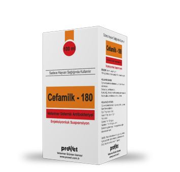 CEFAMILK-180 BİLEŞİMİ Beyaz-krem renkli , steril suspansiyonun her ml.si 180 mg Sefaleksin baza eşdeğer Sefaleksin Na içerir. FARMAKOLOJİK ÖZELLİKLERİ Sefaleksin birçok Gram (+) ve bazı Gram (-) bakteriye karşı etkinlik gösteren , birinci nesil , geniş spektrumlu bir sefalosporindir. Duyarlı bakterilerin hücre duvarı altında yer alan penisilin bağlayıcı proteinlere bağlanarak , bakteri hücre duvarı sentezinin engellenmesi yoluyla etkili olur. Proteinlere bağlanma sonucu bakteri hücresi içinde oluşan yüksek iç osmotik basınç bakterinin erimesine yol açar. Etkili olduğu başlıca bakteri türleri : Staphylococcus spp Streptococcus spp, Corynebacterium spp, Pasteurella multocida, Escherichia coli, Proteus spp, Microciccus spp, Moraxella spp, Actinobacillus lignierese, Actinomyces bovis, Haemophilus spp, Erysipelothrix rusiopathiae, Clostridium spp, Salmonella spp, Fusobacterium spp, Peptostreptococcus spp ve Peptococcus spp.Sefalosporinlere karşı gelişen bakteriyel direncin en yaygın şekli sefalosporinlerin betalakmazlar tarafından inaktive edilmesidir. Kasiçi uygulama sonrası 1 saat içinde 9.8 mg / ml.lik maksimum plazma konsantrasyonuna ulaşır . Sefaleksinin bakterisit etkisinin görülebilmesi için iki saatlik inhibitör konsantrasyon varlığı yeterli olur . Plazmadaki konsantrasyonu hızla düşerek 12 saat sonra minimum sınırların altına iner. Sefaleksin kan meme bariyerini geçemez. engel olur. Sefaleksin metabolize olduktan sonra çoğunluğu idrarla ve bir kısmı da dışkı ile vucuttan atılır. ÖZEL KLİNİK BİLGİLER VE HEDEF TÜRLER İÇİN UYARILAR • Septisemik mastitislerde meme içi uygun bir antibiyotik ile birlikte kullanılması önerilir. • Karaciğer ve böbrek yetmezliği olan hayvanlarda doz ayarlaması yapılmalıdır. • Gebelikte kullanımı : Önerilen dozlarda hedef hayvanlarda sefaleksin sodyum kullanımı gebelik yönünden güvenlidir. İLAÇ ETKİLEŞİMLERİ • Tetrasiklinler ve fenikoller ve makrolitlerle birlikte birlikte kullanılmamalıdır. • Penisinler ile birlikte kullanıldığında sinerjistik etki yapabilir. • Diğer sefalosporinler ile çapraz duyarlılık vardır. İSTENMEYEN ETKİLER • Duyarlı hayvanlarda solunum güçlüğü, dilde şişme , mukozalarda ve deride kızarıklık , kaşıntı görülebilir. • Diare , dışkıda mukus veya kanama belirtileri gözlenebilir. • Kasiçi uygulamada enjeksiyon yerinde geçici , lokal , hafif doku reaksiyonu oluşabilir. • Allerjik hayvanlarda anaflaktik reaksiyonlar oluşabilir. DOZ AŞIMINDA BELİRTİLER VE TEDBİRLER • Verilen yüksek doza ve sürenin uzamasına bağlı olarak neurotoksik ve nefrotoksik etkiler , abdominal kramplar , sersemlik ve kaslarda spazmlar oluşabilir. • Enjeksiyon yerinde deri dökülmeleri ,ve ateş yükselmesine neden olabilir. Uygulamanın kesilmesi ile belirtiler normale döner. GIDALARDA ILAÇ KALINTI UYARILARI: İlaç Kalıntı Arınma Süresi (IKAS): İnek sütü : Sıfır (0 ) gün. Son ilaç kullanımından sonra kasaplık sığırlar 4 gün süreyle kesime gönderilmemelidir. KONTRENDİKASYONLARI • Damariçi verilmez. • Sefalosporinlere aşırı duyarlı hayvanlarda kullanılmamalıdır. • Ciddi renal bozukluğu olan hayvanlarda kullanılmamalıdır. • Küçük herbivorlarda kullanılmamalıdır. KULLANICININ ALMASI GEREKEN ÖNLEMLER VE HEKİMLER İÇİN UYARILAR • Penisilinler ve sefalosporinler enjeksiyon, inhalasyon , yutma veya deri teması sonucu ciddi allerjik reaksiyonlara neden olabilirler.Bu yüzden aşırı duyarlı kişilerin ürüne teması sakıncalıdır. • Temas sonrası deride kaşınma gibi reaksiyonlar görülürse tıbbı müdahale için hekime başvurulmalıdır. • Yüzde , dudaklarda ve dilde şişme ile nefes darlığı acil tıbbı müdahale gerektiren belirtilerdir. GENEL UYARILAR Kullanmadan önce ve beklenmeyen bir etki görüldüğünde veteriner hekime danışınız. Çocukların ulaşamayacağı yerde bulundurunuz MUHAFAZA ŞARTLARI VE RAF ÖMRÜ Oda sıcaklığında (15-25 C) saklanır. Güneş ışığına maruz bırakılmamalıdır. Raf ömrü imalat tarihinden itibaren 2 yıldır. TİCARİ TAKDİM ŞEKLİ ŞEKLİ Karton kutuda 20-50 -100 ve 250 ml renksiz cam şişelerde arzedilir. PROSPEKTÜS ONAY TARİHİ : 22.03.2006 |