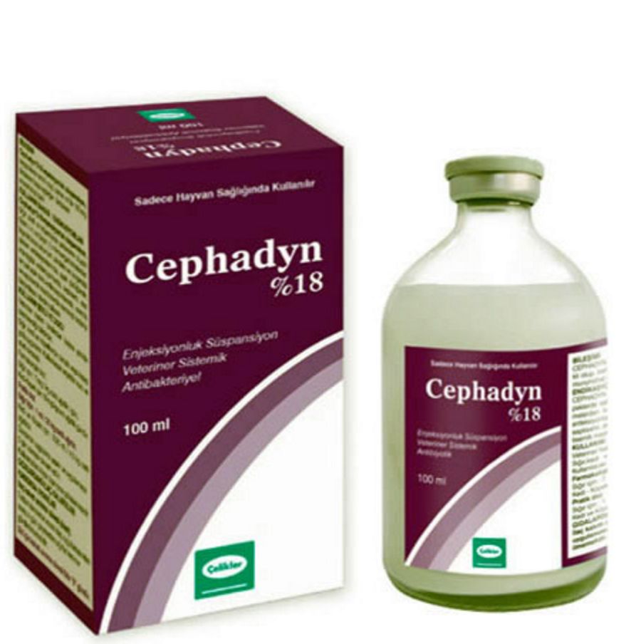 BİLEŞİMİ Cephadyn %18 Enjeksiyonluk Süspansiyon, beyaz-krem renkli olup, beher ml’de 180 mg Sefaleksin monohidrat içerir. ENDİKASYONLAR Cephadyn %18 enjeksiyonluk süspansiyon, sığır, kedi ve köpeklerde Sefaleksine duyarlı Gram (-) ve Gram (+) mikroorganizmalardan kaynaklanan solunum, sindirim ve ürogenital sistem enfeksiyonlarında, ayak çürüğünde, interdigital enfeksiyonlarda, septisemi, deri ve yumuşak doku enfeksiyonlarında, metritis ve septik mastitislerde meme içi tedaviyi tamamlayıcı olarak kullanılır. KULLANIM ŞEKLİ VE DOZU Veteriner hekim tarafından başka şekilde tavsiye edilmediği takdirde; Sığır, kedi ve köpeklerde derialtı veya kas içi yolla uygulanır. Kullanılacak enjektör kuru ve sterilolmalıdır. Farmakolojik doz: Sığır için: 7 mg/ kg canlı ağırlık / gün Kedi- Köpek için : 10 mg/ kg canlı ağırlık /gündür. Pratik doz: Sığır için: 1 ml/ 25 kg canlı ağırlık Kullanmadan önce iyice çalkalanmalıdır. Günde bir uygulama yapılır ve uygulamaya 5 gün süreyle devam edilir. Verilen miktar 10 ml’yi aştığında, enjeksiyon ikiye bölünerek yapılmalıdır. |