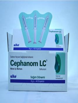Cephanom LC Sağım Dönemi Meme İçi Merhem Veteriner Antibakteriyel BİLEŞİMİ Cephanom LC; 8 g meme içi enjektör içerisinde 75 mg sefkuinoma eşdeğer 89 mg sefquinom sulfat içeren steril merhemdir. FARMAKOLOJİK ÖZELLİKLERİ Cephanom etken maddesi sefquinom bakterisit etki gösteren, β laktamaz enzimlerine dirençli, 4. kuşak, geniş spektrumlu bir sefalosporindir. Sefalosporinler bakterilerde hücre duvarının sentezini engelleyerek bakterileri öldürür. Beta laktamaz pozitif ve penisilinaz pozitif bakterilerde dahil olmak üzere pek çok Gram pozitif ve Gram negatif bakteri türünü kapsayan geniş etki spektrumuna sahiptir. Sefkuinoma duyarlı bakteriler Escherichia coli, Klebsiella sp., Pasteurella sp,., Salmonella spp., Proteus mirabilis, Haemophilus spp., Corynebacterium pyogenes., Staphylococcus aureus., Streptococcus dysgalactia., Streptococcus agalactia., gibi Gram pozitif ve Gram negatif bakterilerdir. Rhodococcus spp. ve Pseudomonas spp., sefkuinoma orta derecede duyarlı Campylobacter spp., ve Enterococcus spp. ise dirençlidir. Tüm 4. kuşak sefalosporinler gibi sefquinom da yüksek düzeyde dokulara dağılım ve hücresel penetrasyon özelliği gösterir. Meme içine uygulandığında sütte kolayca disperse olur ve sefkuinomun dağılımı sağlanır. Sınırlı ölçüde sistemik dolaşıma geçer, uygulamadan sonraki 5 gün içinde dokuyu tamamen terk eder. KULLANIM SAHASI/ ENDİKASYONLARI Cephanom LC, laktasyondaki ineklerde sefkuinoma duyarlı bakterilerden kaynaklanan klinik mastitislerin tedavisinde kullanılır. KULLANIM ŞEKLİ VE DOZU Veteriner Hekim tarafından başka şekilde tavsiye edilmediği takdirde ineklerde sağımdan sonra meme lobuna meme kanalı yoluyla bir adet Cephanom LC süspansiyonun tamamı uygulanır. Uygulama sonrasında memeye masaj yapılarak ilacın dağılımına yardım edilir. Uygulama 12 saat arayla 3 kez tekrarlanır. İnfüzyondan önce meme başı ve meme kanalı bir antiseptik ile temizlenir. Enjektör açıldıktan sonra enjektör ucunun kontaminasyonundan kaçınılmalıdır. Akut olgularda memeiçi Cephanom LC uygulamasının parenteral uygun antibakteriyel uygulanması ile desteklenmesi özellikle bakteriyel tedaviye yardımcı olur. İSTENMEYEN/YAN ETKİLER Penisilin ve sefalosporinlere aşırı duyarlı hayvanlarda anafilaktik reaksiyonlar gelişebilir. İLAÇ ETKİLEŞİMLERİ Sefalosporinler tetrasiklinler ve diğer bakteriostatik antibiyotiklerle antagonisttir. Aminoglikozidler ile sinerjistik etki gösterirler. GIDALARDAKİ İLAÇ KALINTILARI HAKKINDA UYARILAR İlaç kalıntı arınma süresi (i.k.a.s); Tedavi süresince ve son ilaç uygulanmasından sonra 4 gün geçmeden sığırlar kesime sevk edilmemelidir. İnek sütü için kalıntı arınma süresi ”10 sağım” 5 gündür. KONTRENDİKASYONLAR Betalaktam antibiyotiklere aşırı duyarlı hayvanlarda kullanılmamalıdır. Gebelikte kullanım Rat ve tavşanlarda yapılan çalışmalarda embriyotoksik ve teratojenik etki gözlenmemiştir. GENEL UYARILAR Kullanmadan önce ve beklenmeyen bir etki görüldüğünde veteriner hekime danışınız. Çocukların erişemeyecekleri yerlerde saklayınız UYGULAYICININ ALMASI GEREKEN ÖNLEMLER VE GENEL UYARILAR Penisilinler ve sefalosporinlerin enjeksiyon, inhalasyon, sindirim ve temas yoluyla duyarlı bireylere bulaşması allerjik reaksiyonlara (hipersensitizasyon) neden olabilir. Bu maddelere bağlı allerjik reaksiyonlar bazen ciddi sağlık problemi yaratabilir. Bu nedenle;