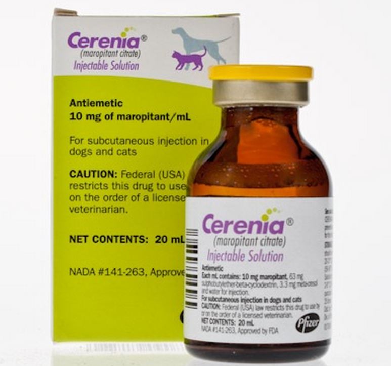 FORMÜLASYONU Her ml içerisinde 10 mg maropitant sitrat monohidrat halinde maropitant ve koruyucu madde olarak 3,3 mg metakrezol içerir. ENDİKASYONLARI Cerenia köpeklerde aşağıdaki durumlarda kullanım için endikedir. Diğer destekleyici önlemler ile birlikte kusmanın tedavisi KULLANIM ŞEKLİ VE DOZU Cerenia® enjeksiyonluk çözelti köpeklere günde bir kez, 1 mg/kg vücut ağırlığı (1 ml/10 kg vücut ağırlığı) dozunda derialtı yolla uygulanır. Tedavi birbirini izleyen 5 gün süreyle devam ettirilebilir. Kusmanın önlenebilmesi için, Cerenia enjeksiyonluk çözelti en az 1 saat önceden uygulanmalıdır. Etki süresi yaklaşık 24 saattir ve bu nedenle, tedavi kusmaya neden olabilecek bir ajanın, örneğin kemoterapi uygulanmasından 1 gece önce uygulanabilir. |