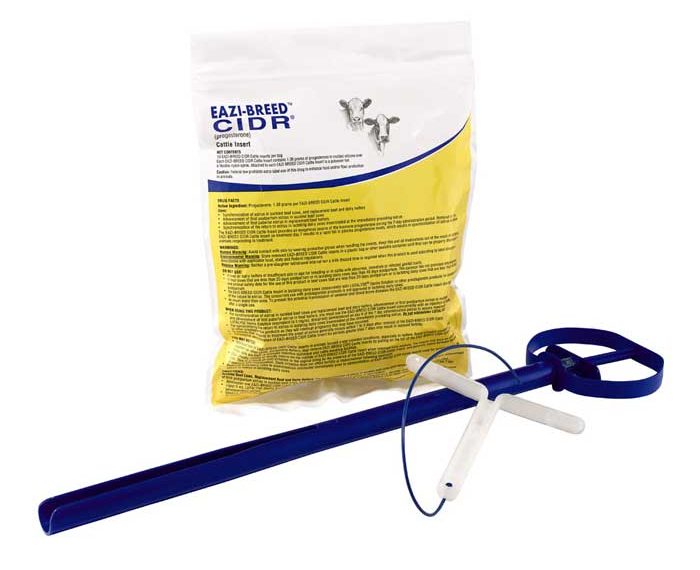 Prostaglandin F2 a ve analogları ile kombinasyon halinde kullanılır. Önerildiği şekilde kullanıldığında araç uzaklaştırıldıktan sonra genellikle 48-96 saat arasında kızgınlık görülmektedir. Kızgınlığın çoğunlukla 48-72 saat arasında görüldüğü bildirilmiştir. KULLANIM ŞEKLİ VE DOZUHer aracı kullanım içindir ve 7 gün boyunca uygulanır. Östrus Senkronizasyonu ve embriyo Transferi için Alıcı ve Verici Hayvanların Senkronizasyonu için Uygulama Her ineğin ya da düvenin vajinasına 1 adet CIDR 1380″ yerleştirilir. Spiral vajina içinde 7 gün boyunca bırakılır ve uzaklaştırmadan 24 saat önce Iuteolitik dozda prostaglandin F2 a ya da analoğu uygulanır. Uygulamaya cevap veren hayvanlarda östrus genellikle aracın uzaklaştırılmasından 1-3 gün sonra meydana gelir. Hayvanlar kızgınlığın saptanmasından sonraki 12 saat içinde tohumlanmalıdır. Uygulama Uygulama aşağıdaki prosedüre göre yapılmalıdır.