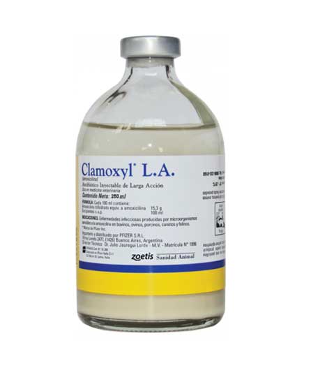 Clamoxyl LA BİLEŞİMİ: Clamoxyl L.A. Enjeksiyonluk Süspansiyon her ml’de 150 mg amoksisilin (trihidrat seklinde) içeren gri beaz renkt, yağlı enjeksiyonluk bir süspansiyondur. FARMAKOLOJİK ÖZELLİKLERİ Amoksisilin genis spektrumlu, bakterisidal etkili, yarı sentetik bir penisilindir. Bakteri hücre duvarındaki penisiline spesifik proteinlerine bağlanmak sureti ile hücre duvarı sentezini önler v baktrinin |ize olmasına yol açar. Amoksisilinin-invitro olarak hem gram pozitif hem de gram negatif bakterilere karşı etkili olduğu gösterilmiştir. Duyarlı Bakteriler: Penisiline duyarlı stafilokok ve streptokok suşları, Bacillus anthracis, Actinomyces sp., çoğu Corynebacterium sp., Erysipelothrix rhusiopathiae, Listeria monocytogenes, bazı anaeroblar (Clostridium sp., Fusobacterium sp., bazı Bacteroides sp.), bazı gram negatif aeroblar (Borrelia sp., Leptospira sp., Actinobcillus sp., Haemophilus sp., Moraxella sp., Pasteurella sp.). Kazanılmış Bağışıklık Nedeniyle Orta Dereceli Duyarlılık Gösteren Bakteriler: Campylocater sp., Enterococci, Proteus mirabilis, Enterobacteriaceae, Salmonella sp., Taylorella equigeniitalis, Serpulina sp., Rhodococcus equi. Dirençli Bakteriler: Bacteroides fragilis, Bordetella bronchiseptica, Citrobacter sp., Enterobacter sp., Klebsiella sp., diğer Proteus sp., Pseudomonas aeroginosa, Serratia sp., Yersinia enterocolitica. Clamoxyl L.A. Enjeksiyonluk Süspansiyon 48 saatten daha uzun süre etkili antibiyotik aktivitesi sağlayacak şekilde formüle edilmiş bir süspansiyondur. İçeriğinde bulunan alüminyum stearat ve yağlı taşıt maddesi nedeniyle enjeksiyon bölgesinden uzun sürede absorbe olur. Emilim sonrası serumda 1-3. Saatler arasında pik konsantrasyona erişir. Böbrek, idrar, karaciğer ve safrada yüksek konsantrasyonlara ulaşır. Akciğer, deri, yağ ve kas dokusundaki konsantrasyonları ise nispeten daha düşüktür. Vücuttan baslıca idrar ve safra yoluyla atılmaktadır. Clamoxyl LA KULLANIM SAHASI/ENDİKASYONLARIClamoxyl L.A. sığır, koyun, köpek ve kedilerde amoksisiline duyarlı mikroorganizmaIardan ileri gelen enteritis gibi sindirim sistemi enfeksiyonları, pneumoni gibi solunum sistemi enfeksiyonları, ürogenital sistem enfeksiyonları, abse, tırnak, göbek enfeksiyonlarında ve viral hastalıklar sırasında duyarlı bakteriler tarafından oluşturulan sekonder enfeksiyonların tedavisinde ve uzun etkinin gerektiği durumlarda kullanılır. KULLANIM ŞEKLİ VE DOZUVeteriner hekim tarafından baska bir sekilde tavsiye edilmediği takdirde; önerilen doz 15mg/kg canlı ağırlıktır. Belirtilen dozu elde etmek için Clamoxyl L.A. Enjeksiyonluk Süspansiyon’dan her 10 kg vücut ağırlığına 1 ml kas içi yada deri altı yolla uygulanır. Damae içi uygulanmaz. Gerekli olan durumlarda 48 saat sonra tekrar edilebilir. Tavsiye edilen doz ve süre aşılmamalıdır. İçeriğin iyi bir şekilde karışımını sağlamak için uygulamadan önce Şişe iyice çalkalanmalıdır. Enjeksiyon sonrası, enjeksiyon bölgesine masaj yapılmalıdır. Kedi ve köpeklerde kolay bir enjeksiyon için 20 gauge’dan ince olmayan iğneler kullanılmalıdır. Sığırlarda 10, koyunlarda 5 ml’den fazla uygulamalar farklı bölgelere yapılmalıdır. Penisilin preparatları genel olarak ortamdaki su içinde hızla hidrolize olurlar. Bu nedenle enjeksiyon için kuru enjektör kullanılmalıdır. Böylece şişede kalan içeriğin su damlaları ile kontaminasyonu önlenecektir. Kullanımda asepsi ve antisepsiye dikkat edilmelidir. KONTRENDİKASYONLAR Penisilin ve sefalosporinlere alerjisi olan hayvanlarda kontrendikedir. Damar içi, perikard içi ya da intratracheal yolla kullanılmalıdır. Gebelikte Kullanım: Amoksisilinin damızlık ve gebe sığır ve koyunlarda güvenliği hakkında bilgiler yoktur. Penisilinlerin plasentayı geçtiği bilinmektedir. Ancak gebe laboratuvar hayvanları üzerinde yapılan çalışmalarda fetüs üzerinde herhangi bir olumsuz etki saptanmamıştır. İSTENMEYEN ETKİLER Penisilinlerin en önemli etkileri akut anafilaksi ve kollapstır. Ayrıca daha az şiddette fakat daha sıklıkla aşırı duyarlılık reaksiyonları (ürtiker, ateş, anjiyonörotik ödem gibi) görülebilir. Anafilaksi oluşursa epinefrin ve/veya oksijen, damar içi (IV) steroid uygulanmalıdır. İLAÇ ETKİLEŞİMLERİ Amoksisilin aminoglikozidlerin bakteri içinde penetrasyonunu arttırdığı için birlikte kullanımları sinerjik bir etki oluşturur. Ancak betalaktamlar ile aminoglikozidler kesinlikle aynı enjektör ile uygulanmamalı ve karıştırılmamalıdır. Beta laktam grubu antibakteriyel ilaçlar; makrolidler, tetrasikinler ve fenikoller ile birlikte kullanılmamalıdır. GENEL UYARILAR Kullanmadan önce ve beklenmeyen bir etki görüldüğünde veteriner hekime danışınız. Çocukların ulaşamayacağı yerde bulundurunuz. Miadı geçen ürünler kullanılmamalıdır. GIDALARDA İLAÇ KALINTI UYARILARI İlaç kalıntı arınma süresi (i.k.a.s.); Tedavi süresince ve ilaç uygulamasından sonra sığır ve koyunlar 30 gün geçmeden kesime sevk edilmemelidir. Süt veren sığırlarda tedavi süresince ve son ilaç uygulamasından sonra 5 gün (10 sağım) boyunca elde edilen inek sütü ve 7 gün (14 sağım) boyunca elde edilen koyun sütü insan tüketimine sunulmamalıdır. Sütteki kalıntı arınma süresinin uzun olması nedeniyle insan tüketimi için süt elde edilen koyunlara uygulanması tavsiye edilmez. Enjeksiyon noktası içi kalıntı arınma süresi sığır ve koyunlarda 50 gündür. UYGULAYICININ ALMASI GEREKEN ÖNLEMLER Sefalosporinlere ve penisilinlere duyarlı olduğu bilinen kisiler ilaçla hiçbir şekilde temas etmemelidir. Duyarlı kişilerin ilaca ağız, deri veya inhalasyon yoluyla maruz kalması sonrası yüz, göz ve dudaklarda şişme, nefes almada zorluk gibi belirtilerin meydana gelmesi halinde acil tıbbi müdahale gerekir. Böyle bir durumda il