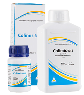 BİLEŞİMİ 1 lt’de Kolistin sülfat 150.000 mg KULLANIM SAHASI / ENDİKASYONLARI Colimis % 15 Oral Çözelti; broyler, yumurtacı tavuk ve hindiler başta olmak üzere dana-buzağılarda karşılaşılan Gram (-) mikroorganizmaların sebep olduğu gastroenteritislerin sağaltımı amacıyla, içme sularına katılarak verilen geniş spektrumlu antibakteriyel oral çözeltidir. KULLANIM ŞEKLİ VE DOZU Colimis % 15 Oral Çözelti, hayvanların günlük su tüketimlerine bir seferde katılır. |