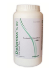 BİLEŞİMİ: Her g'ında 800 mg amoksisilin trihidrat (yaklaşık 700 mg amoksisiline eşdeğer) içeren beyaz, sarımsı antibakteriyel çözelti tozudur. KULLANIM SAHASI VE ENDİKASYONLARI: Amoksisilin etçi tavukların spektrumuna giren gram pozitif ve gram negatif bakterilerden kaynaklanan sistemik ve yerel enfeksiyonların sağaltımında kullanılır. KULLANIM SEKLİ VE DOZU: Etçi tavukların içme suyuna katılarak oral yolla kullanılır. Veteriner hekim tarafından başka şekilde tavsiye edilmediği takdide Farmakolojik doz: Etçi tavuklarda 10-20 mgAg C.A. gün'dür. Pratik doz: 80 kg canlı ağırlık için günde 1-2 g toz günlük içme suyuna katılır. Uygulamaya 3-5 gün devam edilir. İlaçlı suyun 2-3 saat içinde tüketilmesi sağlanır. Kullanılmayan ilaçlı su 12 saat sonra değiştirilmelidir. GIDALARDA İLAÇ KALINTI UYARILARI (İ.K.A.S.): İlaç kalıntı arınma süresi (i.k.a.s); eti için yetiştirilen tavuklarda 7 gün, İnsan tüketimi için yumurta elde edilen tavuk ve hindilere uygulanmaz. TİCARİ TAKDİM SEKLİ: 1000 g ve 2500 g plastik kavanozlarda satışa sunulmuştur. |