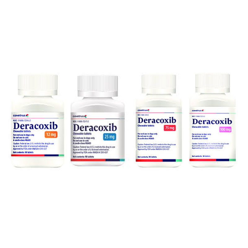 Deracoxib tabletleri, coxib sınıfının reçeteli steroidal olmayan antiinflamatuvar bir ilacıdır (NSAID). Köpeklerde ortopedik (kemik) ve diş cerrahisi ile ilişkili postoperatif ağrı ve enflamasyonun kontrolü ve köpeklerde osteoartrit ile ilişkili ağrı ve enflamasyonun (ağrı) kontrolü için endikedirler. Tabletler, uygulamayı daha kolay hale getirmek için tatlandırılmıştır.