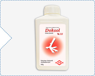 Doksol %10 Oral Çözelti; etçi tavuk ve hindilerde doksisikline duyarlı gram negatif ve gram pozitif bakterilerle mikoplazmaların oluşturduğu enfeksiyonların ve viral enfeksiyonlara eşlik eden sekonder bakteriyel enfeksiyonların tedavisinde kullanılır. Kullanıldığı başıca hastalıklar : CRD ( Kronik Solunum Sistemi Hastalığı ), mikoplazmozis. İLAÇ KALINTI ARINMA SÜRESİ