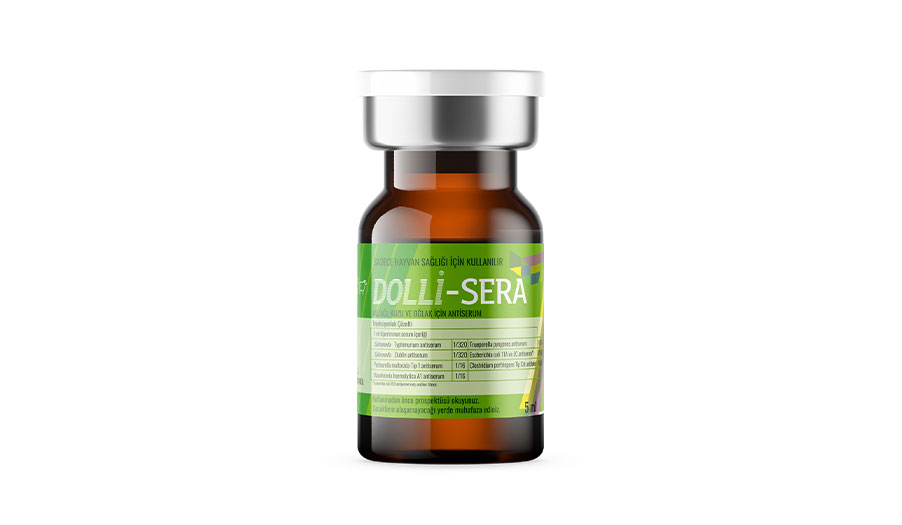 BİLEŞİMİ: Veteriner biyolojik ürünün adı ve kısa tanımı: DOLLİ-SERA; Buzağı, kuzu ve oğlakların septisemik, enterlk ve respiratorik enfeksiyonlara karşı koruyucu ve hastaları tedavi etmek amacıyla kullanılan Salmonella Dublin, Salmonella Typhlmurium, Pasteurella multocida, Mannheimla haemolytica, Trueperella (Arcanobacter) pyogenes, Escherichia coll bakterileri ve Clostridium perfringens Tip C p toksoidinin yoğun olarak Immunlzasyonu He hazırlanan hiperimmun serumdur. Aktif maddelerin adı ve gücü ile diğer yardımcı bileşenlerin adı ve miktarı Biyolojik ürünün kompozisyonu: Her 1 mİ için minimum oranlar aşağıdaki gibidir.