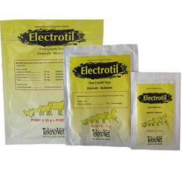 BİLEŞİMİ Beyaz akıcı bir toz olan Electrotil Oral Çözelti Tozu’nun toplam 1 gramında; Poşet A içinde: Sodyum bikarbonat ...................... 49 mg Poşet B içinde: Glukoz monohidrat ...................... 750 mg bulunmaktadır. KULLANIM YERİ /ENDİKASYONLARI Electrotil Oral Çözelti Tozu; Buzağı, kuzu, tay gibi genç hayvanlar olmak üzere kedi, köpek ve kanatlılar da dahil olmak üzere tüm hayvan türlerinde çeşitli nedenlere bağlı enfeksiyöz veya nonspesifik gastro-enteritisler, ishal, inatçı kusma halleri, aşırı terleme ve operasyonlar sonucunda ortaya çıkan sıvı - elektrolitlerin (sodyum, potasyum, klorür gibi) kayıplarının yerine konulmasında ve enerjinin desteklenmesinde kullanılır. KULLANIM ŞEKLİ VE DOZU Electrotil Oral Çözelti Tozu, içme suyuna karıştırılarak ağız yoluyla hayvanlara verilir. Veteriner Hekim tarafından başka bir şekilde tavsiye edilmemişse; 1-2 g/1 kg c.a. dozda hesaplanarak verilir. Tüm hayvan türlerinde çözelti taze olarak hazırlanıp verilmelidir. Buzağı ve kuzular : 50 kg canlı ağırlık için 50 - 100 g Electrotil Oral Çözelti Tozu ( poşet A + B ) 2 Litre ılık suda eritilir. Tay ve atlarda : Taylarda 50 kg canlı ağırlık için 50 - 100 g Electrotil Oral Çözelti Tozu (poşet A + B) 2 litre ılık suda eritilir. Atlarda 50 - 100 g Electrotil Oral Çözelti Tozu 2 litre ılık suda eritilir. Kedi ve köpeklerde: 10 kg canlı ağırlık için 10 - 20 g Electrotil Oral Çözelti Tozu (poşet A + B) 1 litre suda eritilir. Elde edilen çözelti günde 2 kez, 3-4 gün süresince verilir. Eğer gerek duyulursa, tedaviye 2-3 gün daha devam edilir. Sütle beslenen hayvanlarda süt verildikten 15-20 dakika sonra hazırlanan çözelti verilmelidir. Kanatlılarda : 200 litre içme suyuna 100 g’lık Electrotil Oral Çözelti Tozu (poşet A ve B), 1 ton içme suyuna 500 gram Electrotil Oral Çözelti Tozu (5 adet 25 g poşet A + 5 adet 75 g poşet B) katılır. Uygulamaya 5-7 gün devam edilir. |
