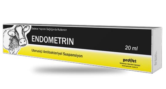 ENDOMETRIN BİLEŞİMİ Açık sarı renkli yağlı süspansiyon 20 ml'de 500 mg ampisiline eşdeğer ampisilin sodyum , 500.000 IU kolistine eşdeğer kolistin sülfat , FARMAKOLOJİK ÖZELLİKLERİ Ampisilin bakterisit etkili , geniş spektrumlı bir penisilin türevidir. Bakterilerin aktif çoğalma döneminde hücre duvarının mukopeptid biyosentezini inhibe ederek etki gösterir. Özellikle Stafilokok, Streptokok, S. fecalis, E. coli, Klebsiella, Shigella, Salmonella, Pasteurella, Brucella, Closttridium, Corynebacterium sp.'ye karşı etkilidir. Kolistin polipeptid yapısında bakterisit bir antibiyotiktir. Katyonik nitelikte yüzey- aktif bir maddedir. Bakteri hücre membranlarının fosfolipid yapılarını bozup , hücre geçirgenliğini artırarak etkili olur. Gram negatif bakterilerden E. coli, Salmonella sp. Pseudomonas aeruginosa, Proteus sp., Shigella sp., Vibrio sp., Klebsiella sp., ve Bordetella sp. Başlıca etkili olduğu mikroorganizmalardır. Gram pozitif bakterilere etkili değildir. İSTENMEYEN / YAN ETKİLERİ Tavsiye edilen dozlarda uygulandığında herhangi bir yan etkisi yoktur. Nadiren penisilin alerjisine bağlı olarak; kaşıntı, ürtiker, bulantı, kusma, solunum güçlüğü, koma gibi yan etkiler, anafilaktik şok meydana gelebilir. İLAÇ ETKİLEŞİMLERİ Amikasin sülfat, klorpromazin hidroklorür dopamin hidroklorür, gentamisin sülfat, oksitetrasiklin hidroklorür, linkomisin hidroklorür sodyum bikarbonat ve tetrasiklin hidroklorür ile geçimsizdir. GIDALARDA İLAÇ KALINTI UYARILARI İlaç Kalıntı Arınma Süresi (i.k.a.s) ; T edavi süresince ve son ilaç uygulamasını takiben 7 gün geçmeden inekler kesime sevk edilmemelidir. Son ilaç uygulamasından sonra 6 sağım (3 gün ) boyunca elde edilen sütler insan tüketimine sunulmamalıdır. KONTRENDİKASYONU Penisilin grubu antibiyotiklere aşırı duyarlı hayvanlarda kullanılmamalıdır. Penisilinlere bağlı aşırı duyarlılıklarda ürtiker, deri döküntüleri ve anjiyonöretik ödem oluşabilir. DOZ AŞIMI , BELİRTİSİ ALINACAK ÖNLEMLERVE TEDAVİSİ Penisilinlere aşırı duyarlılık sonucu, anafilaktik şok gelişmesi durumunda; ilaç uygulamasına son verilerek adrenalin ve kortikosteroidler ile müdahale edilmelidir.. MUHAFAZA ŞARTLARI VE RAF ÖMRÜ Oda sıcaklığında ( 15-25 °C 'de ) saklandığında raf ömrü 2 yıldır. Açılan tüp kullanılmalıdır, kalan miktar tekrar kullanılmaz. GENEL UYARILAR Kullanmadan önce ve beklenmeyen bir etki görüldüğünde veteriner hekime danışınız. Çocukların ulaşamayacağı yerde ve ambalajında saklayınız. Sadece intrauterin uygulama içindir. TİCARİ TAKDİM ŞEKLİ 10 ve 20 ml'lik, 4, 10 , 40 ve 100 adet poletilen enjektör içeren karton kutularda arz edilir. |
