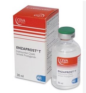 BİLEŞİMİ Her 1 ml'si 5 mg dinoprost (trometamol olarak) ile yardımcı madde olarak 16,5 mg benzil alkol içerir. ENDİKASYONLARI Enzaprost-T'nin luteolitik etkileri sığırlarda aşağıdaki terapötik alanlarda kullanılabilir: 1. Östrus senkronizasyonunda, KULLANIM ŞEKLİ VE DOZU Intramusküler enjeksiyonla uygulanmalı ve aseptik önlemler alınmalıdır. Steril enjektör ve iğne ile derinin temiz bölgesine uygulanmalıdır. Islak ve kirli deriden enjeksiyon yapmamaya dikkat edilmelidir. Sığırlarda: 1- Östrus senkronizasyonu: Hayvan başına 5 ml Enzaprost-T (25 mg dinoprost) uygulanır ve gerekirse 11 (10-12) gün sonra tekrar edilir. Di-östrus döneminde uygulama yapılan hayvanlar normal östrusa dönerek tedaviden 2-4 gün sonra ovulasyon olur. Enzaprost-T ile tedavi edilen hayvanlar doğal yolla veya östrus gözlendiğinde ya da sabit tohumlama zamanında (ikinci enjeksiyondan sonra 72. ve 96. saatler önerilir) suni tohumlamayla tohumlanabilir. 2- Fonksiyonel bir korpus luteum'u olan fakat östrus davranışı göstermeyen ineklerde sub-östrus (sakin kızgınlık) tedavisi: Hayvan başına 5 ml Enzaprost-T uygulanır ve gerekirse 11 (10-12) gün sonra tekrar edilir. 3- Fonksiyonel veya kalıcı bir korpus luteum bulunduğu durumlarda kronik metrit veya piyometra tedavisinde: Hayvan başına 5 ml Enzaprost-T uygulanır ve gerekirse 11 (10-12) gün sonra tekrar edilir. 4- Gebeliğin 120. gününe kadar abort sağlama: Hayvan başına 5 ml Enzaprost-T uygulanır. Enzaprost-T luteolitik etkisi sayesinde sığırlarda gebeliğin 120. gününe kadar gebeliği sonlandırabilir. 5- Erken doğumu teşvik amacıyla: Gebeliğin 270. veya daha sonraki gününde olan hayvana 5 ml Enzaprost-T uygulanır. Uygulamadan sonra l - 8 (ortalama 3) gün arasında doğum gerçekleşir. |
