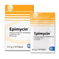 Epimycin Bileşimi Epimycin, pembe renkli, tarçın kokulu homojen bir tozdur. Her 4.5 g'lık polietilen kaplı kuşe kağıt folyoda 210 mg Erîtromîsîn baza eşdeğer 261.8 mg Eritromisin fosfat içerir. Farmakolojik Özellikleri ■ Eritromisin, Streptomyces erytheus'dan elde edilen makrolid yapıda bakteriyostatik I bir antibiyotik olup etkisini bakteriIerdeki 505'lik ribozomal alt birime bağlanarak ■ protein sentezini in hibe etmek suretiyle gösterir. Etki spektrumuna giren bakteriler J Gram pozitif aeroblar Bacillus sp., Corynebacterium sp., Erysipelothrix rhusiopathiae, ' Staphylococcus sp, Streptococcus sp. (penisiline dirençli betalaktamaz salgılayanlar da I dahil) Gram negatif aeroblar: Actinobacillus sp., Campylobacter sp., Leptospira sp. ■ Anaerobik bakteriler: Actinomyces sp., Bacteroides sp. {B.fragilis hariç), Clostridium sp., bazı Fusobacterium sp., anaerobik koklar Orta derecede duyarlılık: Enterococcus sp., bazı Bordotella sp., Haemophilus sp., Legionella sp., Ehrlîchia sp., Pasteurella sp. Dirençli bakteriler: Nocardia sp., Pseudomonas spv Chlamydia psittaci, Mycobacterium sp., Enterobacteriaceae, B. fragallis, E. coli, Klebsiella sp. Eritromisin oral yoldan kullanımı takiben ince barsakların üst kısmından kolayca emilir, 1 -4 saat içinde plazma doruk konsantrasyonlarına ulaşır ve hızla tüm vücut doku ve sıvılarına dağılır; karaciğer, böbrek ve akciğerlerde yüksek oranda bulunur. Eritromisinin vücuttan atılımı başlıca safra yoluyla, daha düşük miktarlarda (%12-15) idrar yoluyla olur. İstenmeyen Etkileri Tavsiye edilen dozlarda herhangi bir yan etki gözlenmez. İlaç Etkileşimleri Fenikoller, linkozamidler, diğer makrolid antibakteriyeller ile etki şekillerinin aynı olması nedeniyle birlikte uygulanmamalıdır. Eritromisin, teofilinin atılmasını yavaşlatır ve zehirliliğini arttırabilir; bu nedenle birlikte kullanılması tavsiye edilmez. Fenobarbital ve karaciğer mikrozomal enzimleri tarafından metabolize edilen diğer ilaçlarla birlikte uygulanmamalıdır. Doz Asımında Belirtiler, Tedbirler, Antidot Ateş, eleri döküntüleri ve eozinofil sayısında artış gözlenebilir. Gıdalardaki İlaç Kalıntıları Hakkında Uyarılar ilaç Kalıntı Arınma Süresi (i.k.a.5.): Tedavi süresinceye son ilaç uygulamasından sonra tavuklar 21 gün geçmeden kesime gön deri Imemelİdlr. Tedavi süresince ve son ilaç uygulamasından sonra 6 gün boyunca elde edilen tavuk yumurtaları insan tüketimine sunulmamalıdır. Kontrendikasyonları İlaca allerjisi olanlarda ve karaciğer yetmezliği bulunanlarda kullanılmamalıdır. Genel Uyarılar Kullanmadan önce ve beklenmeyen bir etki görüldüğünde veteriner hekime danışınız. Çocukların ulaşamayacağı yerde ve gıda maddelerinden uzakta bulundurunuz. Raf ömrü geçmiş ve ambalajı hasarlı ürünleri satın almayınız ve kullanmayınız. Uygulayıcının Alması Gereken önlemler Ve Hekimler İçin Uyarılar İlaçla temastan kaçınınız ve kullandıktan sonra ellerinizi yıkayınız. İlaç kullanılırken sigara içilmemeli ve yemek vb. yenilmemelidir. Muhafaza Şartları Ve Raf ömrü Kendi ambalajı içinde, kuru bir yerde ve oda sıcaklığında {15-25°C) saklayınız. Raf ömrü imal tarihinden itibaren 2 yıldır. Ticari Takdim Şekli 10 adet, 4.5 gramlık polietilen kaplı kuşe kağıt folyo içeren karton kutuda piyasaya sunulmaktadır. Prospektüsün Onay Tarihi: 07.05.2004 T.C Gıda, Tarım ve Hayvancılık Bakanlığı Ruhsat Tarihi ve No: 10.08.1992 - 7/653 İmal Yeri: Nobelfarma İlaç San. ve Tic. A.Ş. Sancaklar 81100 Düzce - Türkiye |
