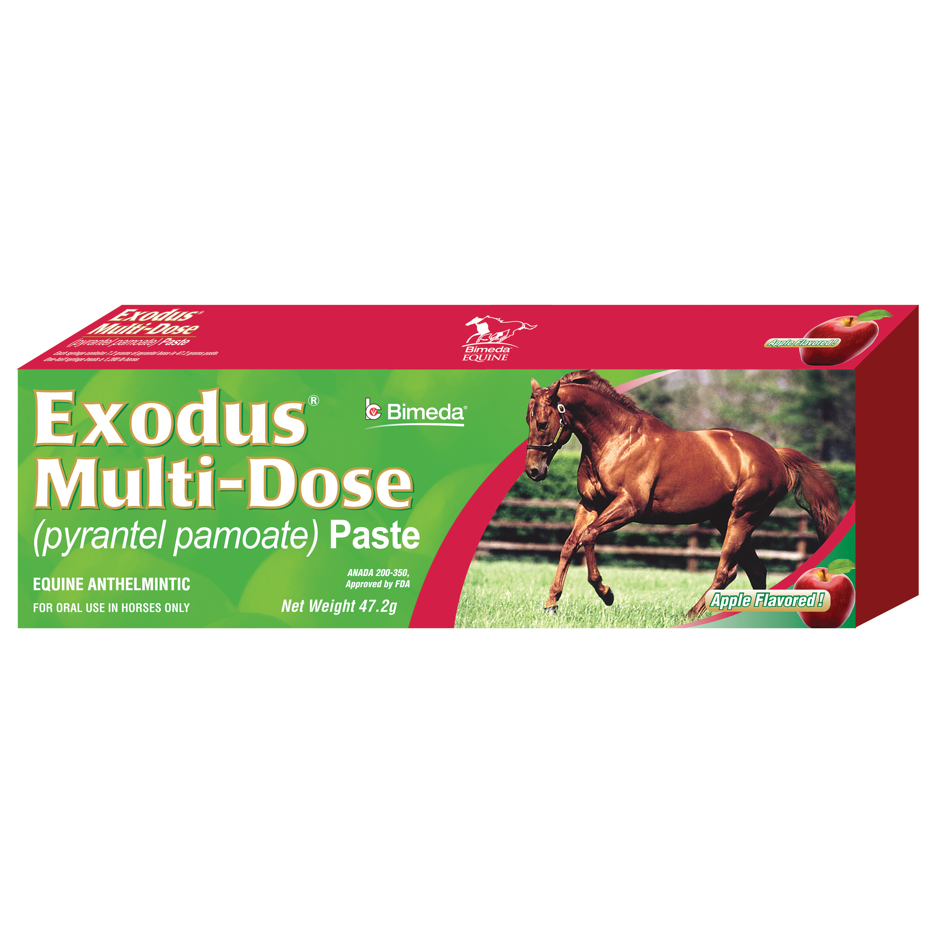 Exodus® Çok Dozlu Macun (pirantel pamoat), vücut ağırlığının kilogramı başına 3 miligram pirantel bazından oluşan tek bir oral doz olarak uygulanacaktır. Şırınganın dört ağırlık işareti artışı vardır. Her ağırlık işareti, 300 pound vücut ağırlığı için önerilen dozu gösterir. Yarım şırınga, 1200 lb'lik bir atı tedavi eder. Kapağı çıkardıktan sonra macun dil sırtına bırakılmalıdır. Şırınganın meme ucunu ağzın köşesine yerleştirin. Şırıngayı geriye doğru yönlendirin ve macunu dil üzerine bırakmak için pistona bastırın. Bu şekilde verildiğinde, macunun reddedilme olasılığı düşüktür. Atın başını kaldırmak bazen yutma sürecine yardımcı olur. Macunun sadece bir kısmı kullanıldığında, şırınga memesinin kapağını değiştirin. |