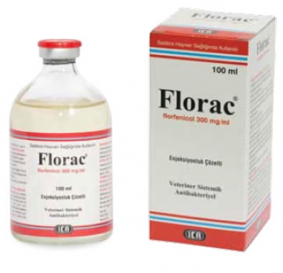 BİLEŞİMİ Florac Enjeksiyonluk Çözelti; sarı renkli berrak çözelti olup, 1 ml’de 300 mg florfenikol içerir. Florac Enjeksiyonluk Çözelti sığırlarda, florfenikole duyarlı bakterilerin neden olduğu hastalıkların sağaltımında kullanılır. Bu kapsamda başlıca, Pasteurella haemolytica, Pasteurella multocida, Haemophilus somnus ve Corynebacterium pyogenes’in neden olduğu solunum yolu enfeksiyonlarında, Fusobacterium necrophorum ve Bacteroides meleninogenicus’un neden olduğu ayak çürüğü, interdigital nekrobasillosis ve enfeksiyöz pododermatitis gibi bakteriyel kaynaklı ayak hastalıklarında, Moraxella bovis’in neden olduğu enfeksiyöz keratokonjunktivitis’in sağaltımında kullanılır. Kas içi uygulama: |