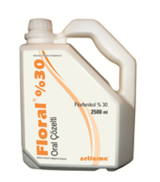 BİLEŞİMİ: Her ml'sinde 300 mg florfenikol içeren berrak açık sarı renkli antibiyotik çözeltidir. KULLANIM SAHASI/ENDİKASYONLARI: Floral %30 Oral Çözelti; etçi tavuklarda E. coli'nin neden olduğu solunum yolu hastalıkları, sakkulit ve koliseptisemi tedavisinde kullanılır. KULLANIM SEKLİ VE DOZU: Florfenikol etçi tavuklarda 30 mg/kg C.A. gün dozda 3 gün süre ile içme suyuna katılarak kullanılır. Pratik doz su tüketimine bağlı olarak her 1000 kg C.A. için 100 ml Floral %30 Oral Çözeltidir. İlaçlı su her gün taze olarak hazırlanmalıdır. GIDALARDAKİ İLAÇ KALINTILARI İÇİN UYARILAR: İlaç kalıntı arınma süresi (i.k.a.s); Tedavi süresince ve son ilaç uygulamasından sonra etçi tavuklar 5 gün geçmeden kesime gönderilmemelidir. Yumurtası insan gıdası olarak tüketilen tavuklarda kullanılmamalıdır. TİCARİ TAKDİM SEKLİ: 200,500,1000, 2500 ml HDPE plastik şişelerde takdim edilmiştir. |