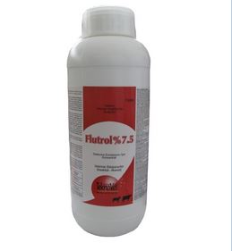 FLUTROL % 7.5 BİLEŞİMİ Flutrol % 7.5 Daldırma Emülsiyonu İçin Konsantrat her ml’de 75 mg Flumetrin içeren, sarımsı - kahverengi bir emülsiyondur. FARMAKOLOJİK ÖZELLİKLERİ Flutrol % 7.5 Daldırma Emülsiyonu İçin Konsantrat, sentetik piretroidlerden Flumetrin içerir. Sentetik piretroidler, doğal piretrinlere benzer şekilde temas ve mide zehiri olarak etkirler, sistemik bir etki oluşturmazlar. Bu gruptan insektisitler lipofilik niteliklidir. Bu nedenle parazit insektlerin lipoid moleküllerce zengin kutikulasından kolayca geçerek etki noktalarına ulaşırlar. Piretroidler genel olarak yağ dokusuna afinite duyarlar. Derinin stratum korneum tabakasındaki hücreler arası bölgedeki yağlı dokularda birikerek tüm deri yüzeyine yayılırlar. Flumetrin etkisini, parazitlerin sinirlerindeki sodyum kanallarının giriş kinetiğini değiştirmek suretiyle gösterir. Flumetrin sodyum kanallarının ya uzun süre açık kalmasını yada yavaş kapanmasını sağlayarak sinir hücresi içine fazla miktarda sodyum akımına sebebiyet verir ve bu şekilde sinir iletimi bloke edilmiş olur. Bu da parazitin sinir hücresi membranında tekrarlayan boşalma ve ani depolarizasyona sebep olur. Bunun sonucunda parazitte konvülsiyonlar ile birlikte huzursuzluk, kaslarda eksitasyon, genel felç durumu, koma ve ölüm şekillenir. Flutrol % 7.5 Dökme Çözelti’nin sistemik etkisi pek yoktur. Deriden çok az miktarda emildiğinden kalıntı değerleri kabul edilen kalıntı limitlerinin çok altında kalmaktadır. Flumetrin’in metabolitleri idrar ve dışkı ile atılır. Toksikolojik bilgiler : Dünya Sağlık Örgütü’nün (WHO) sınıflandırmasına göre Flumetrin’in toksisite sınıfı II’dir. Flumetrin’in akut oral LD50 değeri dişi Wistar farelerde 41 - 3849 mg / kg’dır. ÖZEL KLİNİK BİLGİLER VE HEDEF TÜRLER İÇİN ÖZEL UYARILARFlutrol % 7.5 Daldırma Emülsiyonu İçin Konsantrat’ın etkinlik süresini çevre ısısı ve kene miktarının yoğunluğu gibi faktörler etkiler. Emici ve sokucu bitler ve Psoroptes uyuzu mücadelesinde ise bir defalık ilaç uygulaması kontrol için yeterlidir. İlaç uygulamasından sonra hayvanların üzerine yağacak yağmur, ilacın dişi kenelerin üremelerini engelleyici etkisini azaltmaz. Aşırı sıcak havalarda ilaçlamadan kaçınılmalıdır. Hayvanların ağız ve göz çevreleri ile ağır lezyonlu deri bölgelerine uygulanmamalıdır. Koyunlar için en uygun ilaçlama zamanı kırkımdan 4-6 hafta sonradır. Hayvanların mera mevsiminde 3-4 haftada bir; ağıl mevsiminde ise, ihtiyaç duyuldukça ilaçlanması önerilir. İlaçlanan hayvanların birbirlerini yalamalarına engel olacak tedbirler alınmalıdır. Flutrol % 7.5 Daldırma Emülsiyonu İçin Konsantrat keneler üzerindeki etkisi iki şekildedir. Birinci etkisi, olgun keneler ile bunların larva ve nimfleri üzerine öldürücü etkisi, ikinci etkisi ise, flumetrin az miktardaki kalıntıları ile bile temasa geçen dişi kenelerin canlı yumurta bırakma özelliğinin ortadan kalkması ve steril hale gelmesidir. Bazı kene türlerinin canlı yumurta bırakmalarının % 100 durdurulması için gerekli Flumetrin miktarları (1 ppm : 1 μg Flumetrin/ g deri) şöyledir. Rhipicephalus avertisi 2 ppm İlaveten yapılacak kış ilaçlamasının önemi : Çok konakçılı kenelerin genç dönemlerinin özellikle kış mevsiminde çok aktif oldukları bölgelerde Flutrol ile yapılacak bir ilaçlama ile gelecek yaz döneminde gelişecek hayvanları enfeste edecek kene miktarı büyük ölçüde azalmış olacaktır. Gebelikte Kullanım: Gebelikte kullanımına ilişkin bir komplikasyon bildirilmemiştir. İSTENMEYEN / YAN ETKİLERİ Önerilen sağaltım dozlarında uygulandığında herhangi bir yan etki bildirilmemiştir. İLAÇ ETKİLEŞİMLERİ Organik fosforlu bileşikler piretroitlerin hidrolizini yavaşlatır veya önlerler. Bu durum ilacın memelilere yönelik zehirliliğini arttırabilir. Diğer piretroitler ilaç etkinliğini arttırırlar. DOZ AŞIMINDA BELİRTİLER , TEDBİRLER VE ANTİDOT Doz aşımı durumunda hayvanlarda, deride irritasyon şeklinde belirtiler gözlenebilmektedir. Spesifik bir antidotu olmayıp oluşabilecek zehirlenmelerde temas en az düzeye indirgenmeye çalışılarak, semptomatik tedavi uygulanmalıdır. GIDALARDA İLAÇ KALINTI UYARILARIİlaç Kalıntı Arınma Süresi (İ.K.A.S.) ; Tedavi süresince ve son ilaç uygulamasını takiben sığırlarda et ve süt, koyunlarda et için kalıntı arınma süresi sıfır (0) gündür. İnsan tüketimi için süt elde edilen sağmal koyunlara uygulanmaz. KONTRENDİKASYONLARI Aktif maddeye hassasiyeti olan hayvanlarda kullanılmamalıdır. Sadece harici kullanım içindir. Başka kimyasallar ile karıştırılarak kullanılmamalıdır. GENEL UYARILAR Veteriner hekime danışmadan kullanmayınız. Beklenmeyen bir etki görüldüğünde veteriner hekime danışınız. Çocukların ulaşamayacağı yerlerde bulundurunuz. Ambalajı hasarlı ürünleri almayınız. UYGULAYICININ ALMASI GEREKEN ÖNLEMLER Uygulama sırasında bir şey yenilip, içilmemeli ve sigara kullanılmamalıdır. Konsantre solüsyon hazırlanırken kauçuk çizme, eldiven, maske ve gözlük kullanılmalıdır. Uygulama sırasında tüm vücudu kaplayacak giysiler kullanılmalıdır. Sprey partiküllerini solumaktan kaçınılmalıdır. İlaç uygulandıktan sonra eller mutlaka yıkanmalıdır. Deriye veya göze teması halinde deri ve gözler bol su ve sabun ile yıkanmalıdır. Kontamine giysiler, uygulama sonrası çıkarılmalı ve yıkanmadan tekrar kullanılmamalıdır. Uygulama iyi havalandırılmış yerlerde yapılmalıdır. Spesifik bir antidotu olmadığından, kaza sonucu meydana gelebilecek herhangi bir zehirlenme durumunda prospektüs ile hekime başvurunuz. MUHAFAZA ŞARTLARI VE RAF ÖMRÜ Kendi ambalajında kapağı sıkıca kapatılmış olarak, kuru ve serin bir yerde (15 - 25 °C’de),