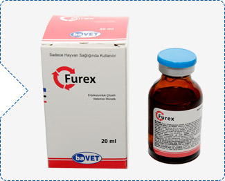 Furex BİLEŞİMİ Furex Enjeksiyonluk Çözelti, açık sarı renkli, berrak, partikülsüz, steril bir çözelti olup 1 ml’de 20 mg Furosemid ve koruyucu olarak benzil alkol içerir. KULLANIM YERİ / ENDİKASYONLARFurex Enjeksiyonluk Çözelti sığır, at, kedi ve köpeklerde dolaşım sistemi, karaciğer, böbrek bozuklukları veya başka bir sebepten dolayı biriken veya ödem oluşturan sıvıların dokulardan, vücut boşluklarından, eklemlerden, tendonlardan ve yüzeylerden diüresis yoluyla uzaklaştırılmasında, zehirlenmelerde diüresisin hızlandırılmasında ve akut akciğer ve beyin ödemi gibi acil durumlarda kullanılır. Buna göre her türlü stres oluşturan durumlar (yüksek efor, ileri gebelik, aşırı sıcaklık, nakiller); muhtelif enfeksiyoz hastalıklar ve nekahat dönemlerinde asıl tedaviye destekleyici olarak; gelişme, beslenme ve adaptasyon sorunlarında, anemiler, hipokalsemi, mikotoksikozisler ve zehirlenme olgularında klinik ve destekleyici tedavi olarak kullanılır. Hastalığın şiddetine, klinik seyrine ve hayvanın sağaltıma vereceği yanıtlara göre, ilacın sağaltım dozu ve tekrarlanma sıklığı ayarlanır. Ödemli durumlarda şişlikler indikten sonra tekrar ödem şekillenmesini önlemek için, uygulama, azaltılmış dozlarla kısa bir süre daha devam ettirilir. Furex KULLANIM ŞEKLİ VE DOZUVeteriner hekim tarafından başka şekilde tavsiye edilmediği takdirde; Sığırlarda ve atlarda sadece yavaş damar içi (i.v), kedi ve köpeklerde yavaş damar içi (i.v) ve kas içi (i.m) yolla uygulanır.