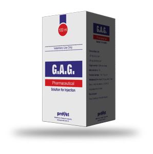 BİLEŞİMİ Her ml.si 100 mg Glikozaminoglikan polisülfat içerir. KULLANIM SAHASI Atların ayak ve diz eklemlerinde non-enfeksiyöz, dejeneratif ve/veya travmatik eklem bozuklukları ve buna bağlı topallıkların tedavisinde kullanılır. KULLANIM ŞEKLİ VE DOZU Kasiçi enjekte edilir. 500 mg / gün dozunda 4 günde bir tekrarlanarak 28 gün boyunca kullanılır. |
