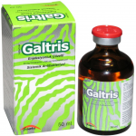 Bileşimi Her ml’de; 40 mg Trimetoprim, 200 mg Sülfametoksazol içeren enjeksiyonluk bir çözeltidir. Kullanım yeri At, sığır ve köpeklerin solunum sistemi enfeksiyonları (pastörella pnömonileri, enzootik pnömoniler, farenjitis, tonsillitis, bronşitis, bronko-pnömoni, pleuritis vs.), sindirim sistemi enfeksiyonları (E.coli ve Salmonella spp’den ileri gelen enfeksiyonlar ile gastritis, enteritis ve gastroenteritis vs.), ürogenital sistem enfeksiyonları (nefritis, piyelonefritis, sistitis, metritis, vaginitis, piyometra vs.), diğer yumuşak doku enfeksiyonları ile viral enfeksiyonların sekonder bakteriyel komplikasyonlarının tedavisinde kullanılır. Kullanım şekli ve dozu Kas içi (IM) veya yavaş damar içi (IV) yolla 15-30 mg/ kg c.a. dozda uygulanır. Bu doz günde 1-2 defa ve 3-5 gün süreyle uygulanmalıdır. Atlarda ve köpeklerde damar içi yolla uygulanması tavsiye edilmektedir. Bütün türlerde, derialtı (SC) uygulamalardan lokal reaksiyon nedeniyle kaçınılmalıdır. Pratikte; günde, 1 ml Galtris / 10 -15 kg c.a. için yeterlidir. |