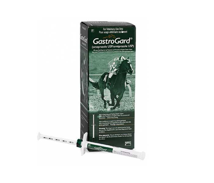Gastrogard Bileşimi: 1 gr sarı ila sarı-taba rengi pürüzsüz homojen pat, etkin madde olarak 370 mg Omeprazol, renklendirici olarak 2 mg sarı demir oksit (E172) içerir. FARMAKOLOJİK ÖZELLİKLER Gastrogard Oral Pat’ın etkin maddesi Omeprazol, sübstitüe benzimidazol grubu bileşiklere ait bir proton pompa inhibitörüdür. Peptik ülser tedavisine yönelik bir antasittir. Omeprazol, paryetal hücrelerin salgılayıcı yüzeyinde H+/K+ ATPaz enzim sisteminin spesifik inhibisyonu ile mide asidi salgılanmasını baskılar. H+/K+– ATPaz enzim sistemi, mide mukozası içindeki asit (proton) pompasıdır. H+/K+-ATPaz, asit salgılanmasının kontrolünde nihai aşama olduğundan, omeprazol asit salgısını uyarandan bağımsız olarak bloke eder. Omeprazol, mide lümeni içine potasyum iyonları karşılığında hidrojen iyonlarını pompalayan mide paryetal hücrelerinin H+, K+ ATPaz enzimine geri dönüşümsüz olarak bağlanır. Atlara oral yoldan 4 mg/kg/gün dozda omeprazol verildikten 8, 16 ve 24 saat sonra, pentagastrin ile uyarılan mide asidi sekresyonu %99, %95 ve %90 oranında inhibe edilmiştir ve bazal sekresyon %99, %90 ve %83 oranında inhibe edilmiştir. Asit sekresyonunun inhibisyonu üzerinde tam etkiye, ilk uygulamadan beş gün sonra ulaşılır. Omeprazolün pat olarak oral uygulama sonrası medyan biyoyararlanımı %10.5 (%4.1-12.7 arasındadır). Emilim hızlı olup, uygulamadan yaklaşık bir saat sonra maksimum plazma konsantrasyonuna (Tmaks) ulaşılır. Maksimum konsantrasyon (Cmaks), 4 mg/kg doz uygulamasından sonra 385 ng/ml ila 693 ng/ml arasında değişir. Oral uygulama sonrası ilk geçiş etkisi anlamlıdır. Omeprazol esas olarak demetile ve hidroksile omeprazol sülfür glukuronidlerine (idrar metabolitleri) ve metil sülfür omeprazolün (safra metabolitleri) yanı sıra indirgenmiş omeprazole (idrar ve safra metabolitleri) hızla metabolize edilir. 4 mg/kg dozda oral uygulamadan sonra, omeprazol 9 saat süreyle plazmada ve 24 saat süreyle fakat 48 saatten fazla olmayacak şekilde, hidroksiomeprazol ve O-desmetilomeprazol olarak idrarda saptanabilir. Omeprazol, esas olarak idrar yoluyla (dozun %43 ila 61’i) ve daha düşük ölçüde feçes yoluyla hızlı bir şekilde atılır, terminal yarılanma ömrü yaklaşık 0.5 ila 8 saat arasında değişir. 28 gün süre ile yürütülen çalışmalarda, günde 1 mg omeprazol/kg vücut ağırlığı dozda ilaç tedavisinin, ülserojen koşullara maruz kalan atlarda mide ülserlerinin oluşumunu engellemede etkili olduğu kanıtlanmıştır. Ülserojen koşullar veya ülser gelişimini artıran koşullar, düşük kaba yem rasyonları, yoğun veya artan egzersizler, düzensiz rasyon veya besleme aralığı, düzenli veya uzun nakiller, yönetim veya barınak değişiklikleri, yetersiz su alımı, sütten kesme ve uzun süre hareketsizliktir. Gastrogard KULLANIM SAHASI VE ENDİKASYONLARGastrogard, atlarda mide ülserlerinin tedavisi ve önlenmesinde kullanılır. KULLANIM ŞEKLİ VE DOZUGastrogard oral kullanım içindir. Veteriner hekim tarafından başka şekilde tavsiye edilmediği takdirde; Mide ülserlerinin tedavisi: Ardarda 28 gün süreyle günde 4 mg omeprazol/kg vücut ağırlığı doz ve hemen ardından ardarda 28 gün süreyle günde 1 mg omeprazol/kg vücut ağırlığı doz uygulaması, tedavi sırasında mide ülserlerinin nüksünü azaltır. Nüks durumunda, tedaviye 4 mg/kg vücut ağırlığı omeprazol dozu ile başlanması tavsiye edilir. Tedavinin, yetiştirme ve antrenman koşullarında değişikliklerle birlikte uygulanması tavsiye edilir. Mide ülserlerinin önlenmesi: 1 mg omeprazol/kg vücut ağırlığı doz oranında günde bir uygulama. GASTROGARD ’ı 4 mg omeprazol/kg vücut ağırlığı doz oranında uygulamak için, enjektör pistonunu atın kilosuna karşılık gelen ağırlık işaretine ayarlayın. Enjektör pistonu üzerindeki her bir ağırlık işareti, 100 kg vücut ağırlığını tedavi etmek için yeterli omeprazol verecektir. Tam enjektör içeriği, 575 kg ağırlığında bir atı 4 mg omeprazol/kg vücut ağırlığı dozda tedavi edebilir. GASTROGARD’ı 1 mg omeprazol/kg vücut ağırlığı dozda uygulamak için, enjektör pistonunu atın vücut ağırlığının dörtte birine karşılık gelen ağırlık işaretine ayarlayın. Bu dozda, enjektör pistonu üzerindeki her bir ağırlık işareti 400 kg vücut ağırlığını tedavi etmek için yeterli omeprazol verecektir. Örneğin, 400 kg ağırlığında bir atı tedavi etmek için pistonu 100 kg işaretine ayarlayın. Kullandıktan sonra kapağını yerine takın. ÖZEL KLİNİK BİLGİLER VE HEDEF TÜRLER İÇİN UYARILAR Dört haftalıktan küçük veya vücut ağırlığı 70 kg altında olan hayvanlar için tavsiye edilmez. Stres, beslenme, işletme ve yetiştirme uygulamaları (yüksek performanslı antrenman ve yarışma dâhil), atlarda mide ülseri gelişimi ile ilişkili olabilir. Atların refahından sorumlu kişiler, aşağıdakilerden birini veya daha fazlasını sağlamak için yetiştirme koşullarını değiştirerek ülserojen faktörleri azaltmayı düşünmelidir: Stresi azaltma, açlığı azaltma, kaba yem ve otlamaya erişimi artırma. İSTENMEYEN ETKİLER Gastrogard, tedavi ile ilişkili bilinen herhangi bir klinik istenmeyen etki yoktur. İLAÇ ETKİLEŞİMLERİOmeprazol, varfarinin eliminasyonunu geciktirebilir. Atların tedavisinde rutin olarak kullanılan ilaçlarla başka herhangi bir etkileşim beklenmemektedir, ancak karaciğer enzimleri ile metabolize edilen ilaçlarla etkileşim göz ardı edilemez. Bir rasemik karışım (%50 r ve %50 s-omeprazol) uygulanmasına rağmen omeprazolün aktif formu s-enantiyomerdir. Aktivasyon kısmen inaktif enantiyomerin (%50’de mevcut) dönüşümü üzerinde CYP 2C19 aracılığı ile gerçekleşir. Atlarda yaygın olarak kullanılan ilaçlar CYP 2C19 inhibitörleri değildir ve bu nedenle eş uygulamanın omeprazo