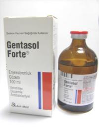 BİLEŞİMİ Her ml’de 100 mg gentamisin baza eşdeğer gentamisin sülfat içerir. Gentasol forte Enjeksiyonluk Çözelti, sığır, kedi, köpek ve atlarda duyarlı bakteriler tarafından meydana getirilen solunum, sindirim ve ürogenital sistem enfeksiyonları, septisemiler ve diğer yumuşak doku enfeksiyonlarında kullanılır. Veteriner hekim tarafından başka şekilde tavsiye edilmediği taktirde; at ve sığırlarda 4 mg/kg canlı ağırlık/gün, kedi ve köpeklerde 5 mg/kg canlı ağırlık/gün dozunda kas içi yolla kullanılır. Buna göre at buzağı ve taylarda her 25 kg canlı ağırlık için günde 1 ml, at ve sığırlarda her 100 kg canlı ağırlık için günde 4 ml, kedi ve köpeklerde her 6 kg canlı ağırlık için günde 0,3 ml uygulanır. Tedaviye ilk gün dozu ikiye bölerek daha sonra günde bir defa olmak üzere 3 gün boyunca devam edilir. Kesinlikle doz aşımı yapılmamalıdır, özellikle zayıf ve küçük cüsseli hayvanlarda doz ayarlaması dikkatli yapılmalıdır. |