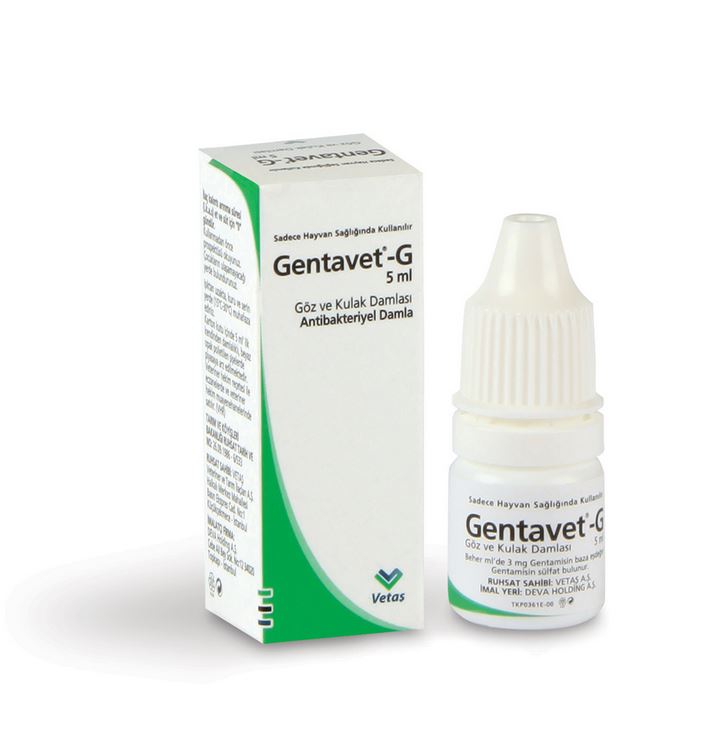 Sadece Hayvan Sağlığında Kullanılır BİLEŞİMİGENTAVET-G Göz ve Kulak Damlası, hemen hemen renksiz - açık sarı renkli kokusuz bir çözelti olup, ve beher ml’sinde 3 mg gentamisin baza eşdeğer gentamisin sülfat içerir. FARMAKOLOJİK ÖZELLİKLERİ GENTAVET-G Göz ve Kulak damlasının etken maddesi olan gentamisin, aminoglikozid yapılı ve orta spektrumlu bir antibiyotiktir. Bakterisid etkisini kendisine duyarlı bakterilerde, ribozomun 30 S alt ünitesine geri dönüşümsüz bağlanarak protein sentezini inhibe etmek suretiyle gösterir. Gram negatif ve gram pozitif bakterilerin patojenik türlerine karşı etkilidir. Bu özelliğinden dolayı primer ve sekonder enfeksiyöz göz ve kulak lezyonlarında başarıyla kullanılır. Pseudomonas aeruginosa, Proteus grubu, Escherichia coli, Klebsiella spp. ve Enterobacter spp., Staphylococcus ve Streptococcus gruplarını etkileyen GENTAVET- G Göz ve Kulak Damlası Coryza gangrenosa bovum ve Spiroketa’ların yapmış oldukları keratokonjuktivit’ lerin tedavisinde önerilir. KULLANIM SAHASI/ENDİKASYONLAR GENTAVET- G Göz ve Kulak Damlası; tüm hayvanlarda duyarlı bakterilerin neden olduğu keratokonjunktivitis, otitis eksterna, dış kulaktaki enfekte olmuş ekzamalar ve akut veya kronik kulak akıntılarının tedavisinde kullanılır. KULLANIM ŞEKLİ VE DOZU Veteriner hekim tarafından başka şekilde tavsiye edilmediği takdirde; Tüm hayvanlarda kataral ve purulent konjunktivitislerde, günde 3 kez, her göz için 2-3 damla göz pınarına damlatılarak sol elin baş ve işaret parmağı ile gözkapağı açılıp kapatılmak suretiyle solüsyonun göz içerisine girmesi sağlanır. Kulak enfeksiyonlarında; önce dış kulak ve kulak kanalı temizlenip, kurulanır. Kulak içerisindeki yabancı cisimler, eksudat vb. uzaklaştırılır. Dış kulak civarındaki tüyler temizlenir. Herbir kulağa günde 2-3 damla olarak uygulanır ve damlatma sonrası çözeltinin kulağın içine iyice nüfuzu için kulak, parmak ile dışarıdan manipule edilir. ÖZEL KLİNİK BİLGİLER VE HEDEF TÜRLER İÇİN ÖZEL UYARILAR Lokal antibiyotiklerin uzun süreli kullanımı mantar vb. organizmaların üremesine yol açabilir. Böyle bir durumda antibiyotik uygulamasına son verilip, uygun bir tedavi uygulanmalıdır. DOZ AŞIMINDA BELİRTİLER, TEDBİRLER VE ANTİDOT Uzun süre, önerilen dozun üzerinde kullanıldığında işitme sinirinin vestibular ve cochlear kısımlarındaki hasar nedeniyle ototoksiteye neden olabilir. Hayvanlarda ataksi, inkoordinasyon gibi belirtiler görülür görülmez tedaviye son verilmelidir. GIDALARDA İLAÇ KALINTILARI HAKKINDA UYARILAR İlaç kalıntı arınma süresi (i.k.a.s) et ve süt için “0” gündür. KONTRENDİKASYONLAR Aminoglikozitlere hassas olduğu bilinen hayvanlarda kullanılmamalıdır. GENEL UYARILAR Kullanmadan önce ve beklenmeyen bir etki görüldüğünde veteriner hekime danışınız. Çocukların ulaşamayacağı yerde bulundurunuz. UYGULAYICININ ALMASI GEREKEN ÖNLEMLER VE HEKİMLER İÇİN UYARILAR Kullanımdan sonra eller yıkanmalıdır. MUHAFAZA ŞARTLARI VE RAF ÖMRÜ 25°C’nin altında oda sıcaklığında, ışıktan koruyarak, buzdolabı ve derin dondurucuya konulmadan saklandığında raf ömrü üretim tarihinden itibaren 36 aydır. Ürün ilk açıldıktan sonra 25ºC’nin altında oda sıcaklığında, ışıktan koruyarak, buzdolabı ve derin dondurucuya konulmadan muhafaza edilmelidir. Ürün ilk açıldıktan sonra 28 gün içerisinde kullanılmalıdır. TİCARİ TAKDİM ŞEKLİ Karton kutu içinde 5 ml’lik kendinden damlalıklı, beyaz opak polietilen şişelerde piyasaya arz olunmuştur. SATIŞ YERİ VE ŞARTLARI Veteriner hekim reçetesi ile eczanelerde ve veteriner muayenehanelerinde satılır. (VHR) PROSPEKTÜS ONAY TARİHİ:06.09.2017 GIDA TARIM VE HAYVANCILIK BAKANLIĞININ PAZARLAMA İZİN TARİH VE NO: 26.09.1986 6/533 PAZARLAMA İZİN SAHİBİNİN ADI VE ADRESİ DEVA Holding A.Ş. Halkalı Merkez Mh. Basın Ekspres Cd. No:1 Küçükçekmece/İstanbul ÜRETİM YERİ ADI VE ADRESİ DEVA Holding A.Ş. Dumlupınar Mh. Ankara Caddesi No:2 Kartepe/KOCAELİ |