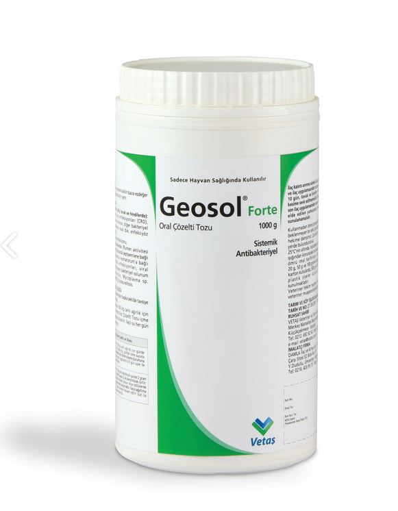 BİLEŞİMİ KULLANIM SAHASI/ENDİKASYONLAR Tay, buzağı ve kuzularda: (Rumen aktivitesi henüz başlamamış) Neonatal septisemilere bağlı ishallerde, Septisemia neonatorum'a bağlı akciğer ve barsak enfeksiyonları, viral enfeksiyonlarla birleşen bakteriyel solunum sistemi enfeksiyonları, Mycoplasma sp. enfeksiyonları (PPLO), Pasteurellosis. Açıkça tetrasiklinlere duyarlı olduğu bilinen hayvanlarda, karaciğer ve böbrek yetmezliği olanlarda kullanılmamalıdır. KULLANIM ŞEKLİ VE DOZU Oksitetrasiklinin hedef hayvan türleri için önerilen günlük oral sağaltım dozu kanatlılarda günde 30 - 40 mg/kg canlı ağırlık, tay, buzağı, kuzularda 40 mg/kg canlı ağırlık/gün olacak şekilde aşağıdaki pratik dozlarda uygulanır. Belirtilen farmakolojik doz birimleri esas alınarak Geosol %20 Oral Çözelti Toz'unun aşağıdaki pratik dozlarda içme sularında çözdürülerek içirilmek suretiyle uygulanır. Tavuk ve hindilerde 100 kg canlı ağırlık için 15-20 g Geosol %20 Oral Çözelti Tozu içme suyuna karıştırılarak kullanılır. Tavuk-hindi: Her 100 kg canlı ağırlık için günde 15-20 gram toz, günlük içme suyuna katılarak içirilir.Klinik iyileşme durumuna göre aynı uygulama 3-5 gün süre ile tekrarlanır. Kuzu- buzağı- tay: Her 10 kg canlı ağırlık için günde 2 gram toz yeteri kadar su ile karıştırılarak içirilir. Günlük toplam dozun ikiye bölünerek uygulanması tavsiye edilir. İlaçla sağaltıma 3-5 gün süreyle devam edilir (süt ile karıştırmayınız). Kitlesel sağaltım uygulanan kanatlı sürülerinde günlük olarak kullanılacak Geosol %20 Oral Çözelti Tozu'nun su tankında homojen bir şekilde karıştırılmasını sağlayabilmek için, önceden 3-5 litre suda çözdürüldükten sonra su tankına aktarılarak yeterince karıştırılması gerekir. İlaçlı su her gün taze olarak hazırlanır. |