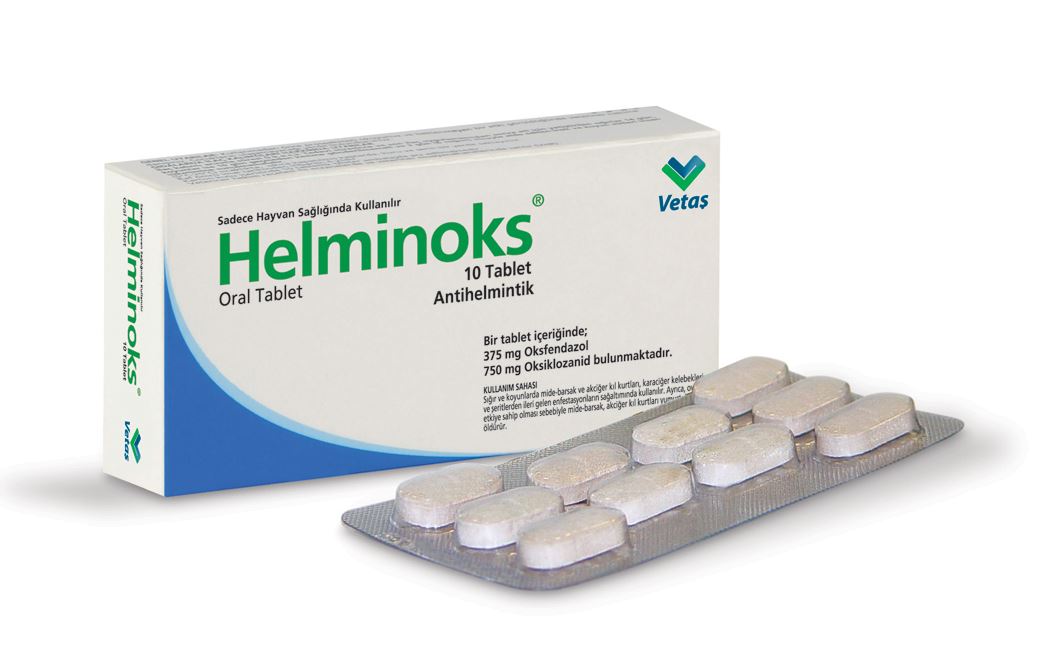 Karaciğer yetmezliği olan hastalarda kullanılmamalıdır. Gebelikte Kullanım: Benzimidazol grubu antihelmintiklerin embriyotoksik ve teratojenik etkilerinden dolayı koç katımı sırasında ve gebeliğin ilk 1/3 'ünde bulunan hayvanlarda kullanılması kontrendikedir. KULLANIM ŞEKLİ VE DOZU Oksfendazol'ün farmakolojik dozu sığır ve koyunlar için 5 mg/kg canlı ağırlık, Oksiklozanid'in farmakolojik dozu sığırlarda 10 - 15 mg/kg canlı ağırlık, koyunlarda 15 mg/kg canlı ağırlıktır. Ağızdan bir miktar su yardımı ile yutturularak veya su içinde çözdürüldükten sonra içirilerek uygulanır. Helminoks Oral Tablet için pratik olarak aşağıdaki dozlar uygulanır; Kuzu 25 kg - 1/2 tablet |