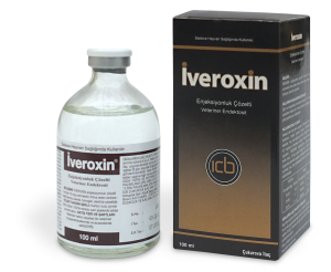 BİLEŞİMİ İVEROXİN enjeksiyonluk çözelti 1 ml’de 10 mg ivermektin ihtiva eden renksiz-hafif sarımsı, berrak, homojen, steril bir çözeltidir. KULLANIM SAHASI/ENDİKASYONLAR İVEROXİN enjeksiyonluk çözelti sığır ve koyunlarda aşağıda isimleri yazılı iç ve dış parazitlere karşı kullanılır: Sığırlarda Gastro-intestinal Nematodlar:Heamonchus placei, Ostertagia sp. O.ostertagi (erginler, larval devreler, hipobiotik larvalar),O.Iyrate (erginler, L4 larvalar), Mecistocirrus digitatus (erginler), Trichostrongylus axei, T.colubriformis, Cooperia oncophora, C.punctata, C.pectinata, Cooperia sp., Nematodirus helvetianus (erginler), N.spathiger (erginler), Oesophagostomun radiatum,Strongyloides papillosus (erginler), Bunostomum phlebotumum,Toxacara vitulorum Akciğer Kıl Kurtları: Dictyocaulus viviparus Deride Filariosis Etkenleri: Parafilaria bovicola Göz Nematodları: Theilezia sp (ergin) Nokra etkeni sinek larvaları: Hypoderma bovis (larva), Hypoderma lineatum (larva) Myiasis Etkeni :Dermatobia hominis (larva) Yara Kurtları (parazitik dönemde): Chrysomya bezziana, Cochliomya hominivorax Uyuz Etkenleri: Psoroptes communis bovis, Psoroptes communis ovis, Sarcoptes scabei bovis, Chorioptes bovis Bitler:Linognatus vituli, Haematophinus eurysternus, Solenopotes capillatus, Damalinia bovis Keneler (bazı tek konaklı keneler, yumuşak keneler): Boophylus sp, Ornithodurus savignyi Koyunlarda Gastro-intestinal Nematodlar: Heamonchus sp, Ostertagia sp., Trichostrongylus sp, Cooperia sp, Nematodirus sp.,Oesophagostomun sp., Strongyloides papillosus, Chaberthia ovina, Trichuris ovis Akciğer Kıl Kurtları: Dictyocaulus filaria Uyuz Etkenleri: Sarcoptes scabei var. Ovis, Psoroptes ovis, Chorioptes bovis var. ovis Bitler: Bovicola ovis, Linognatus pedalis, L.ovillus, L.stenopsis Koyun Yapağı Sineği : Melophaga ovinus Burun Kurtları: Oestrus ovis Yara Kurtları: Chrysomia bezziani Keneler (Tek konaklı): Boophylus sp., Ornithodurus lahorensis KULLANIM ŞEKLİ VE DOZU İVEROXİN enjeksiyonluk çözelti sadece deri altı yolla uygulanır. Sığırlarda boyun bölgesinde veya scapula gerisinde gevşek deri altına, koyunlarda koltuk altı veya koltuk arkasında derinin gevşek bölgesinde deri altı yolla enjekte edilir. Uygulama yapılırken asepsi ve antisepsi kurallarına uyulmalı, kuru, steril enjeksiyon iğnesi ve enjektör kullanılmalıdır. İVEROXİN enjeksiyonluk çözelti veteriner hekim tarafından başka şekilde tarif edilmediği takdirde, 1 kg. canlı ağırlık için etkin madde olarak 0.2 mg /kg.ca ivermektin isabet edecek dozda uygulanır. İVEROXİN enjeksiyonluk çözeltinin pratik dozu, 50 kg vücut ağırlığı için 1 ml. dir. Veteriner hekim tarafından başka şekilde tavsiye edilmediği takdirde, aşağıdaki pratik doz tablosuna uygun şekilde uygulama yapılır.