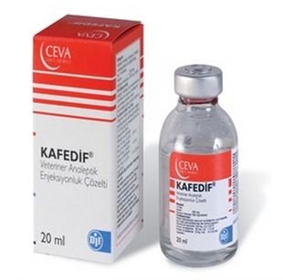 BİLEŞİMİ Her 1ml'sinde; Kafein: 250 mg, Sodyum benzoat: 350 mg içerir. ENDİKASYONLARI Kafedif, merkezi sinir sisteminin ve özellikle de solunum merkezinin uyarılması gereken bütün durumlarda uyarıcı olarak kullanılır. KULLANIM ŞEKLİ VE DOZU Veteriner hekim tarafından başka şekilde tavsiye hesabıyla: edilmediği takdirde 5-15 mg/ kg c.a. günlük doz hesabıyla, At ve sığırlarda (her 100 kg c.a. için): 2-6 ml Tek doz olarak deri altı yolla uygulanır. |